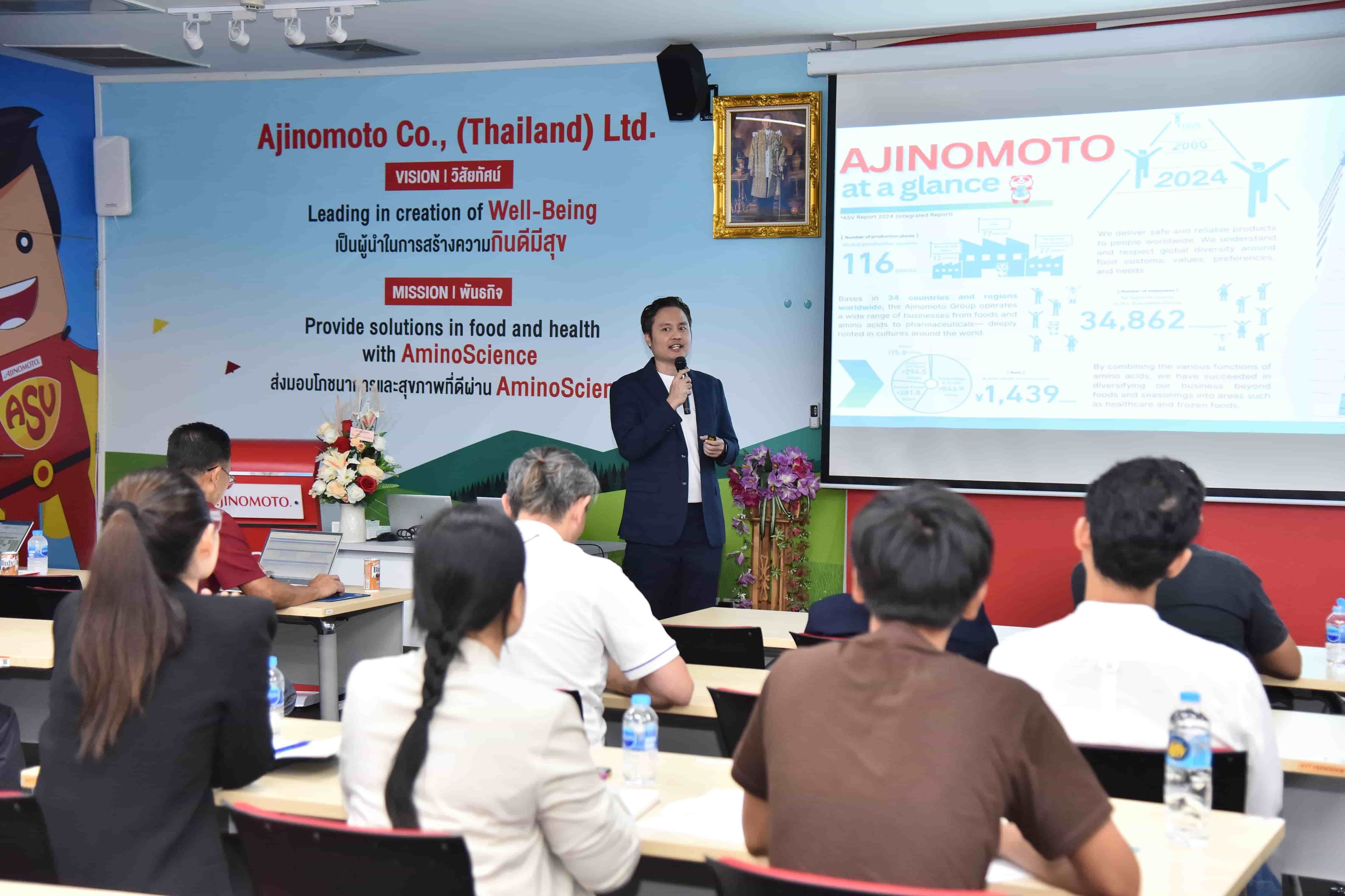 ในช่วงถัดมาได้เข้าเยี่ยมชมนิทรรศการความเป็นมาของผงชูรสไปจนถึงกระบวนการผลิตที่มุ่งสู่มาตรฐาน Net Zero และยังได้เข้าเยี่ยมชมบริเวณโรงงานขนาดพื้นที่กว่า 600 ไร่ ไลน์บรรจุสินค้าต่อไป ทั้งนี้ผู้ประกอบการที่เดินทางมาพร้อมคณะได้รับองค์ความรู้เกี่ยวกับการนำหลัก sustainability ไปปรับใช้กับองค์กรตัวเอง ตั้งแต่ Scope 1-3 หรือการเริ่มที่จะมีเป้าหมายทำเพื่อส่วนรวม มองถึง supply chain ขององค์กรที่จะเกื้อหนุนกันต่อไปเพื่อโลกที่น่าอยู่ และตัวอย่างการปฏิบัติงานจริงที่ Ajinomoto Thailand ที่ได้ทำงานร่วมกับเกษตกรในพื้นที่เป็นแนวทางตัวอย่างและสามารถทำให้ผู้ประกอบการสามารถนำไปปรับใช้กำองค์กรได้ไม่มากก็น้อย