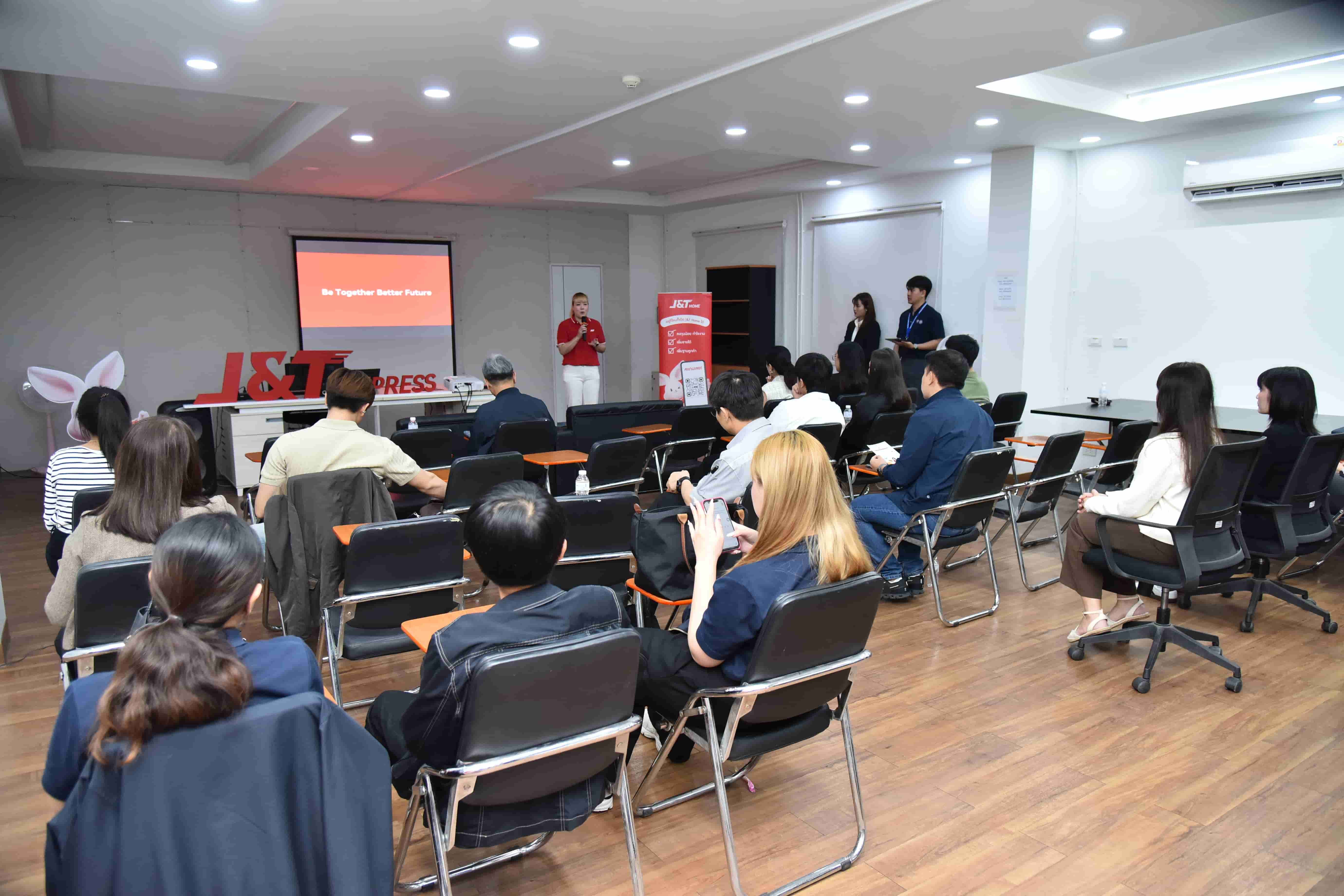 ดร.สุธีมนต์ อักเกอร์เวล ประธาน บริษัท โกลบอล เจท เอ็กซ์เพรส (ไทยแลนด์) จำกัด ให้เกียรติกล่าวต้อนรับและบรรยายประวัติความเป็นมา โดยก่อตั้งขึ้นในเดือนสิงหาคม พ.ศ. 2558 โดยสองพี่น้องชาวจีน คือ เจ็ต หลิว (Jet Lee) และ โทนี่ เฉิน (Tony Chen) ซึ่งบริษัทเริ่มแรกดำเนินธุรกิจในประเทศอินโดนีเซียก่อน และได้ขยายไปยังประเทศต่างๆ ในภูมิภาคเอเชียตะวันออกเฉียงใต้และประเทศอื่นๆ ทั่วโลก J&T Express เข้ามาดำเนินธุรกิจในประเทศไทยในปี พ.ศ. 2561 เน้นการให้บริการขนส่งพัสดุด่วน เป็นหลัก