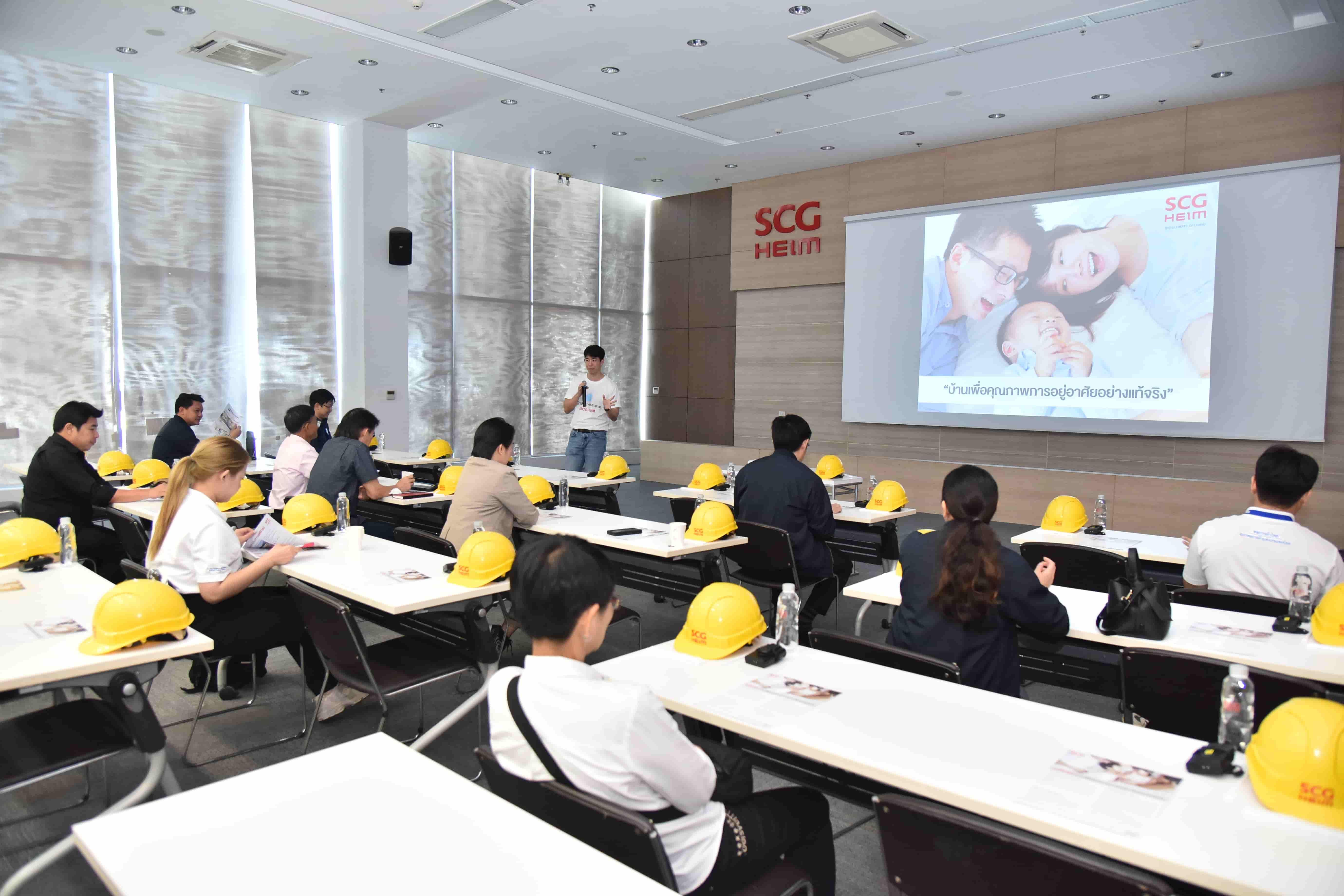 คุณวีระเดช โกวพัฒนกิจ ผู้จัดการวางแผนกลยุทธ์และการตลาด บริษัท เซกิซุย - เอสซีจี อินดัสทรี จำกัด ให้เกียรติกล่าวต้อนรับและบรรยายพิเศษเรื่อง "การจัดการคุณภาพและประสิทธิภาพการผลิต หัวใจสำคัญของพื้นฐานการสร้างบ้าน" จากประสบการณ์อันยาวนานกว่า 100 ปี ที่ SCG ได้ผลิตวัสดุก่อสร้างคุณภาพสูงและรักษามาตรฐานตลอดมา ผสานความร่วมมือกับเซกิซุย เคมิคอล ผู้ชำนาญด้านเทคโนโลยีการสร้างบ้านจากญี่ปุ่น ที่ก้าวล้ำด้วยการใช้หุ่นยนต์ประกอบบ้านในโรงงานควบคู่กับการรักษามาตรฐานคุณภาพการสร้างบ้านระบบโมดูล่าร์และคุณภาพการบริการหลังส่งมอบบ้าน มั่นใจได้ว่า ทุกชีวิตในบ้านเอสซีจี ไฮม์จะมีความสุขตลอดการอยู่อาศัย