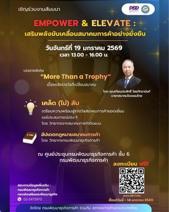 ร่วมเจาะลึกเบื้องหลังความสำเร็จที่มากกว่าถ้วยรางวัล อัปเดตกฎหมายที่ต้องรู้ และแลกเปลี่ยนวิสัยทัศน์จากผู้เชี่ยวชาญ เพื่อเปลี่ยนสมาคมของคุณให้เข้มแข็งและเติบโตอย่างมีทิศทางในยุคใหม่