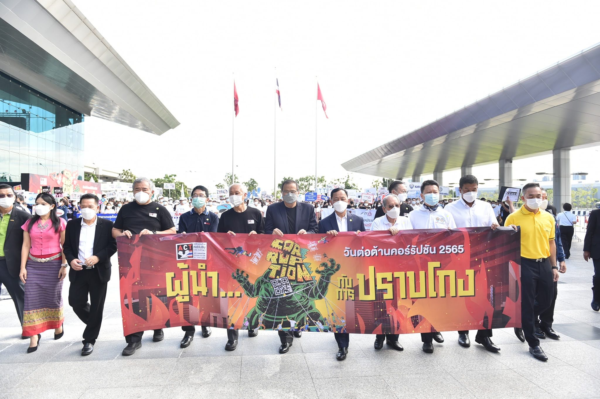 สำหรับ กิจกรรมวันต่อต้านคอร์รัปชัน ประจำปี 2565 จัดขึ้นในแนวคิด “ผู้นำ...กับการปราบโกง” ณ ลานเวทีใหญ่ ชั้น M สถานีกลางบางซื่อ กรุงเทพฯ เป็นเวทีให้ผู้นำตั้งแต่ระดับท้องถิ่น จังหวัด และระดับชาติมีโอกาสมาร่วมเสวนาแลกเปลี่ยนประสบการณ์การปราบโกงร่วมกัน ประกอบด้วย นายอาคม เติมพิทยาไพสิฐ รัฐมนตรีว่าการกระทรวงการคลัง, รศ.ดร.ชัชชาติ สิทธิพันธุ์ ผู้ว่าราชการกรุงเทพมหานคร, นายณรงค์ วุ่นซิ้ว ผู้ว่าราชการจังหวัดภูเก็ต, นายไมตรี ไตรติลานันท์ ผู้ว่าราชการจังหวัดฉะเชิงเทรา, นายพงษ์ศักดิ์ ยิ่งชนม์เจริญ นายกเทศมนตรีนครยะลา, นางสาวเพ็ญภัค รัตนคำฟู นายกเทศมนตรีตำบลเกาะคา จังหวัดลำปางและนายธนวัฒน์ ยอดใจ นายกเทศมนตรีเมืองแม่เหียะ จังหวัดเชียงใหม่ เข้าร่วมแลกเปลี่ยนมุมมองอีกทั้งยังถ่ายทอดสดผ่าน เพจเฟสบุ๊กองค์กรต่อต้านคอร์รัปชัน เพื่อให้ผู้นำและประชาชนทั้งประเทศมีส่วนร่วมปลุกพลังปราบโกงไปในคราวเดียวกัน