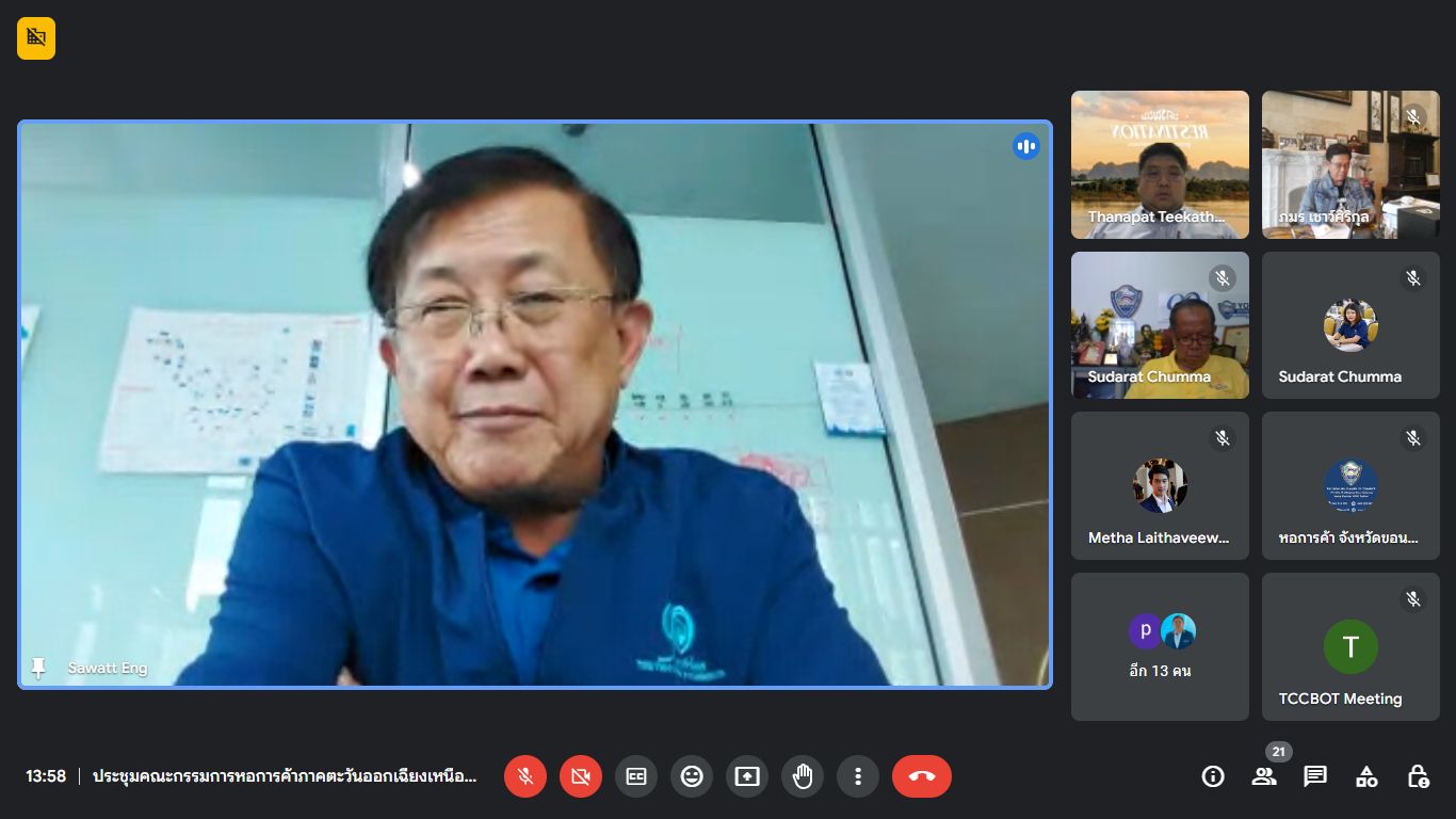 เมื่อวันที่ 20 กุมภาพันธ์ 2567 นายสวาท ธีระรัตนนุกูลชัย รองประธานกรรมการหอการค้าไทย และประธานหอการค้าภาคตะวันออกเฉียงเหนือ เป็นประธานการประชุมคณะกรรมการหอการค้าภาคตะวันออกเฉียงเหนือ หอการค้าไทย ครั้งที่ 1/2567 โดยมี คณะกรรมการหอการค้าภาคตะวันออกเฉียงเหนือ / ที่ปรึกษาหอการค้าภาคตะวันออกเฉียงเหนือ / ประธานหอการค้าจังหวัด และเลขาธิการหอการค้าจังหวัด / ประธาน YEC และเลขาธิการ YEC หอการค้าจังหวัดภาคตะวันออกเฉียงเหนือเข้าร่วมประชุมโดยวิธี Conference Call