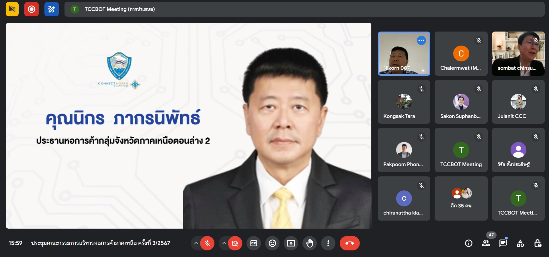 วันที่ 5 มิถุนายน 2567 นายสมบัติ ชินสุขเสริม ประธานหอการค้าภาคเหนือ เป็นประธานการประชุมร่วมคณะกรรมการบริหารหอการค้าภาคเหนือและหอการค้าภาคเหนือ ครั้งที่ 3/2567 ประจำเดือนมิถุนายน 2567 โดยมีที่ปรึกษาและคณะกรรมการหอการค้าภาคเหนือ พร้อมด้วย ประธานและเลขาธิการหอการค้ากลุ่มจังหวัด, ประธานและเลขาธิการหอการค้าจังหวัด, ประธานและเลขาธิการ YEC หอการค้าจังหวัด รวมทั้งกรรมการและ YEC หอการค้าจังหวัด เข้าร่วมประชุมผ่านระบบ Google Meet