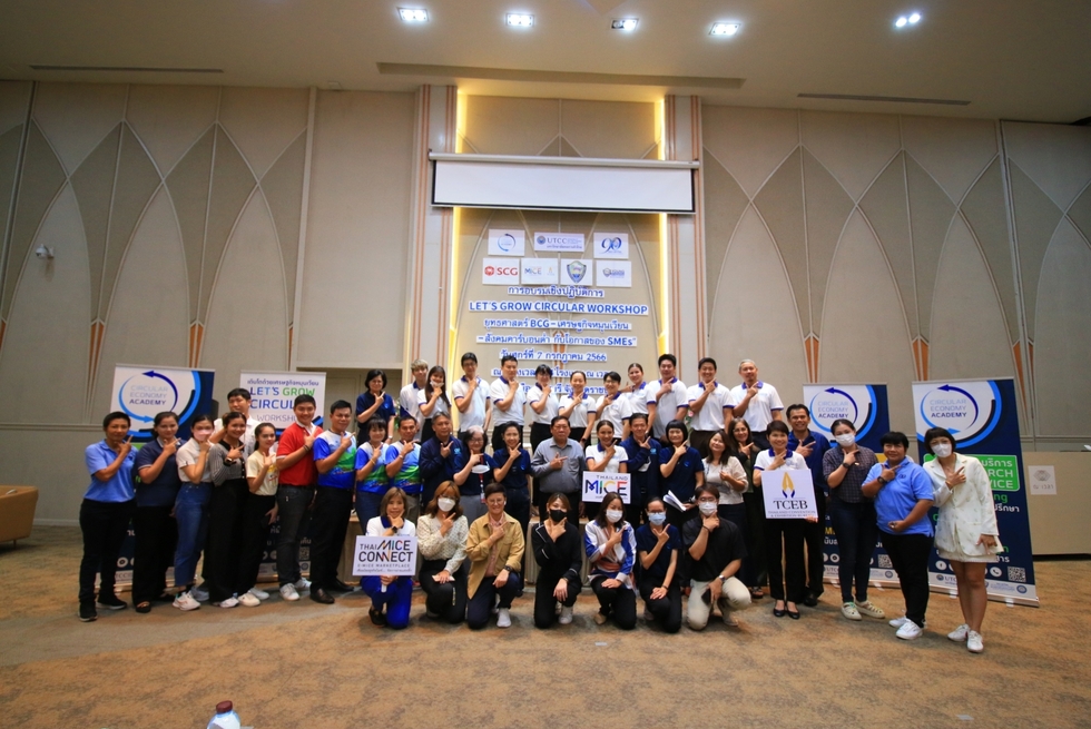 เครือข่ายผู้ประกอบการหอการค้าภาคกลาง สมุทรสงคราม ราชบุรี กาญจนบุรี ร่วมปรับตัวสู่เศรษฐกิจหมุนเวียน ประเดิมหลักสูตร LET’S GROW CIRCULAR โดยสถาบันวิทยาการเศรษฐกิจหมุนเวียนเพื่อผู้ประกอบการและผู้บริโภค (CE Academy) มหาวิทยาลัยหอการค้าไทย ร่วมกับหอการค้าไทย หอการค้าจังหวัด – ผู้ประกอบการรุ่นใหม่ YEC ราชบุรี สมุทรสงคราม จัดอบรมเศรษฐกิจหมุนเวียนหลักสูตร LET’S GROW CIRCULAR Workshop ร่วมสร้างคุณค่าด้านสิ่งแวดล้อม และส่งเสริมมูลค่าเพิ่มแก่ SMEs ภายใต้หัวข้อ “ยุทธศาสตร์ BCG – เศรษฐกิจหมุนเวียน – สังคมคาร์บอนต่ำ กับ โอกาสของ SMEs” นำร่องในภาคกลางก่อนขยายสู่เครือข่ายหอการค้าทั่วประเทศ