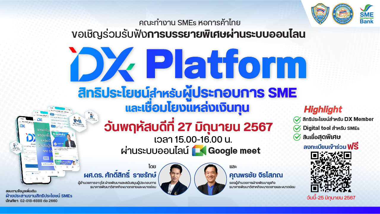 หัวข้อเรื่อง “Dx Platform สิทธิประโยชน์สำหรับผู้ประกอบการ SME และเชื่อมโยงแหล่งเงินทุน"