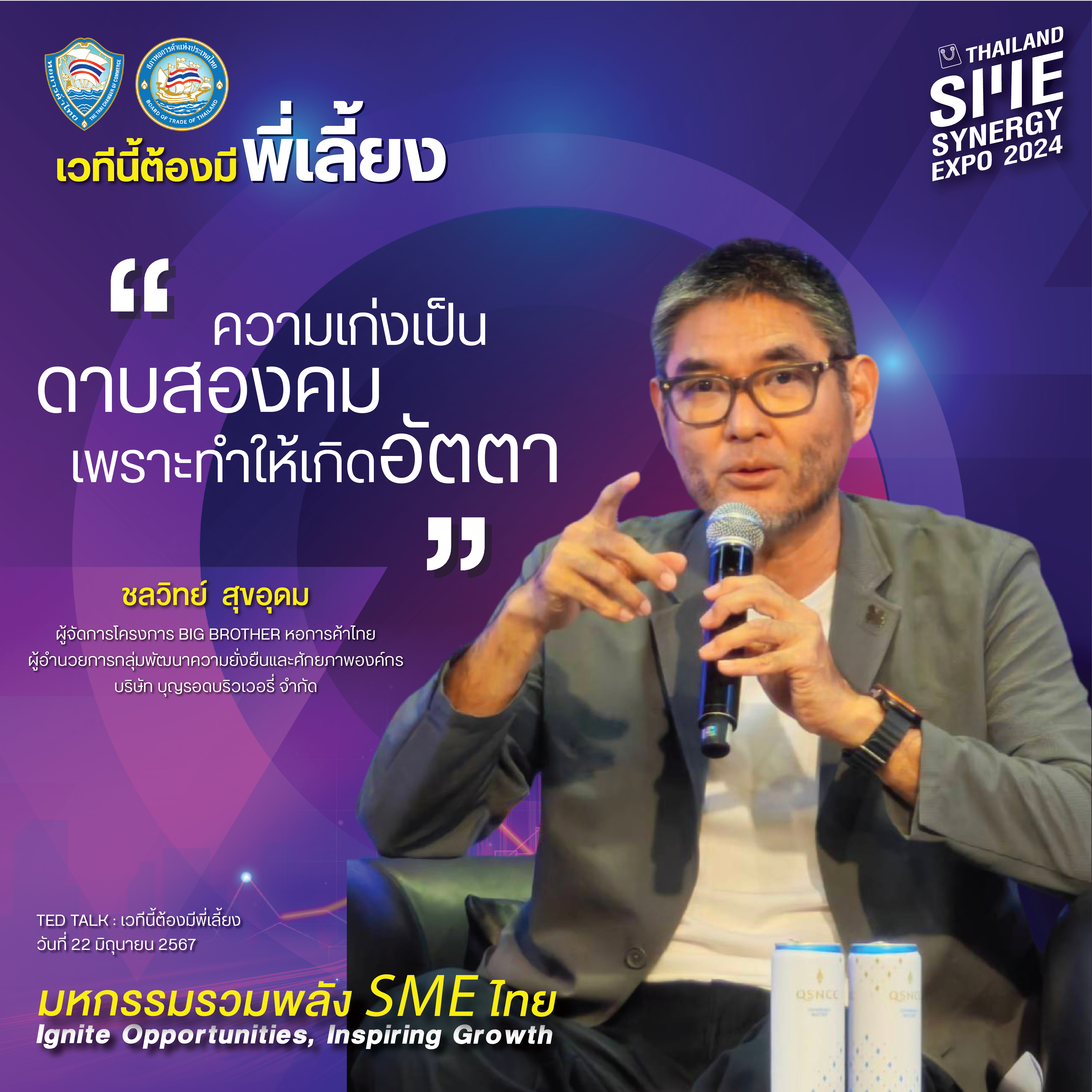 คุณชลวิทย์ สุขอุดม ประธานคณะทำงานโครงการ Big brother หอการค้าไทย กล่าวว่า มุมมองในการทำธุรกิจในยุคที่มีการเปลี่ยนแปลงในปัจจุบัน อยู่ภายใต้ความซับซ้อน เปลี่ยนแปลงรวดเร็ว ต้องมีวิสัยทัศน์ไปล่วงหน้าและมีความยืดหยุ่น ภาคเอกชนของแต่ละประเทศต้องเดินไปด้วยกัน ทั้งขนาดใหญ่ กลาง เล็ก ต้องสนับสนุนซึ่งกันและกัน บริษัทขนาดเล็กสนับสนุนบริษัทขนาดใหญ่ ในขณะที่บริษัทขนาดใหญ่ก็หันกลับมาดูแลบริษัทขนาดเล็ก ให้ทุกภาคส่วนเติบโตไปพร้อมกัน หลายธุรกิจมองแค่ว่า การขายให้มากที่สุดจะทำให้องค์กรประสบความสำเร็จ แต่แท้จริงแล้วองค์ประกอบในการขับเคลื่อนธุรกิจต้องมองหลายมิติทางสังคมโดยรอบ มองถึงผู้ที่เกี่ยวข้องกับองค์กร สิ่งเหล่านี้จะเข้ามาช่วยเราในการให้คำแนะนำ เพื่อยกระดับองค์กรของเราได้