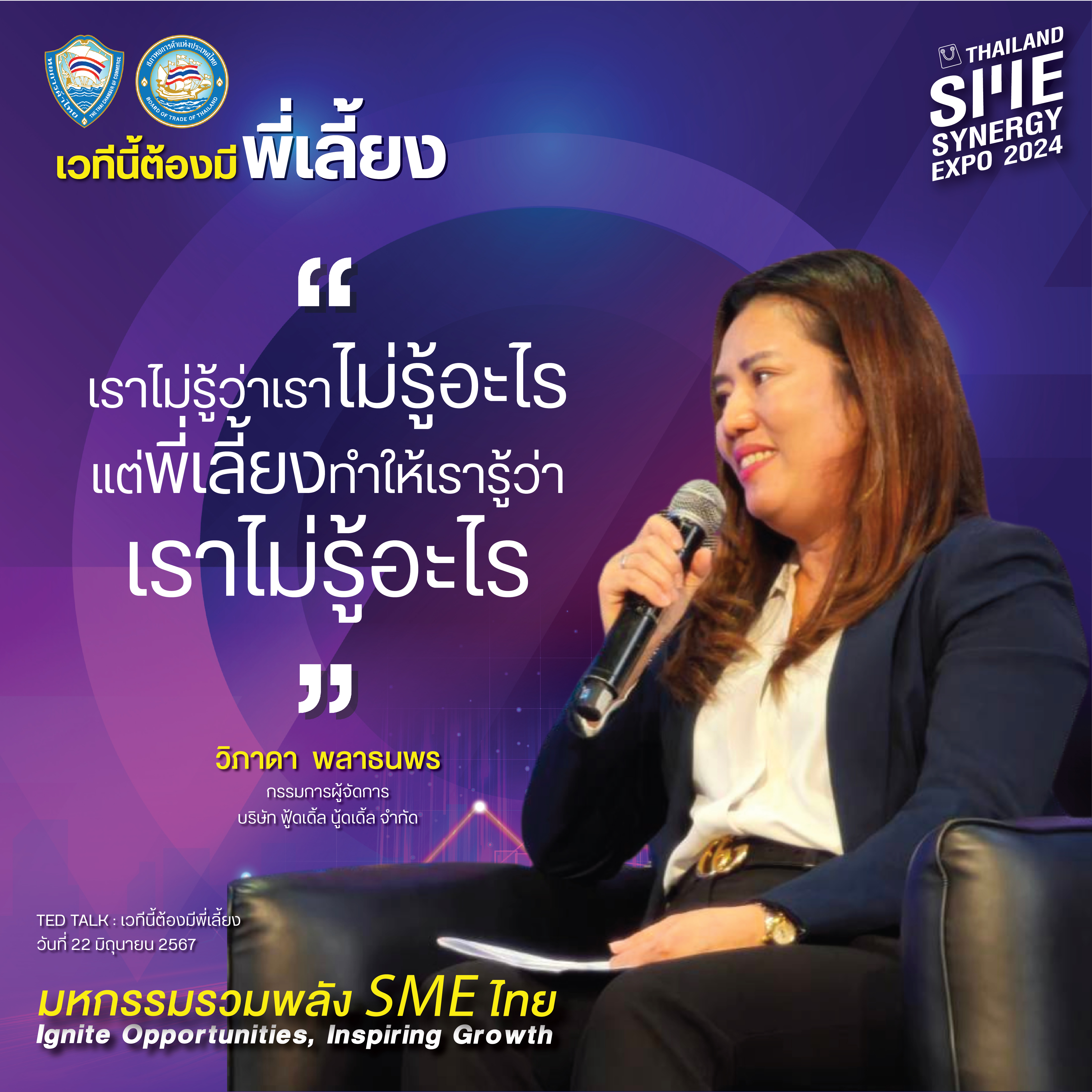 เป้าหมายของธุรกิจโดยมากแล้วคือ ต้องการจะแข็งแรงขึ้น แต่สิ่งสำคัญคือคุณต้องกล้าที่จะก้าวผงาดขึ้นด้วย คุณจำเป็นต้องมีวิสัยทัศน์ มีความตั้งใจ มีความมุ่งมั่น ทุกวันนี้เรามีหน่วยงานที่พร้อมให้การสนับสนุน SME เยอะมาก แต่อยู่ที่ผู้ประกอบการมีความพร้อมหรือไม่ พร้อมเดินเข้าไปขอความช่วยเหลือ พร้อมรับคำแนะนำใหม่ ๆ และพร้อมที่จะก้าวไปข้างหน้า และมาด้วยความพร้อมเหล่านั้น