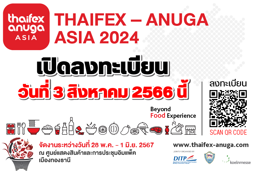 ขอเชิญสมัครเข้าร่วมงานแสดงสินค้าอาหาร THAIFEX – ANUGA ASIA 2024