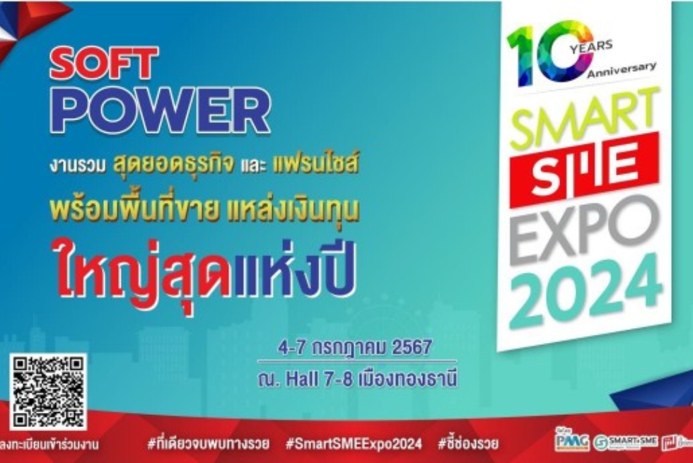 เตรียมพบสุดยอดงานแสดงแฟรนไชส์แห่งปี “Smart SME EXPO 2024” จัดโดยบริษัท พีเอ็มจี คอร์ปอเรชั่นจำกัด ร่วมกับหน่วยงานพันธมิตรทั้งภาครัฐและเอกชน ภายใต้คอนเซ็ปต์รวมสุดยอดธุรกิจแฟรนไชส์จุดพลัง Soft Power ไทย รวบรวมธุรกิจแฟรนไชส์แบรนด์ดังมากมายกว่า 250 บูธ ปูพรมทั่วฮอลล์กว่า 10,000 ตารางเมตร ไม่ว่าจะเป็นแฟรนไชส์อาหาร แฟรนไชส์เครื่องดื่ม ธุรกิจร้านสะดวกซัก แฟรนไชส์บริการ แฟรนไชส์สุขภาพและความงาม แฟรนไชสการศึกษา ตู้จาหน่ายสินค้าอัตโนมัติ รวมทั้งโรงงานรับจ้างผลิต โรงงานแพกเกจจิ้ง ฯลฯ บูธ ในงบลงทุนตั้งแต่หลักพันไปจนถึงหลักล้าน