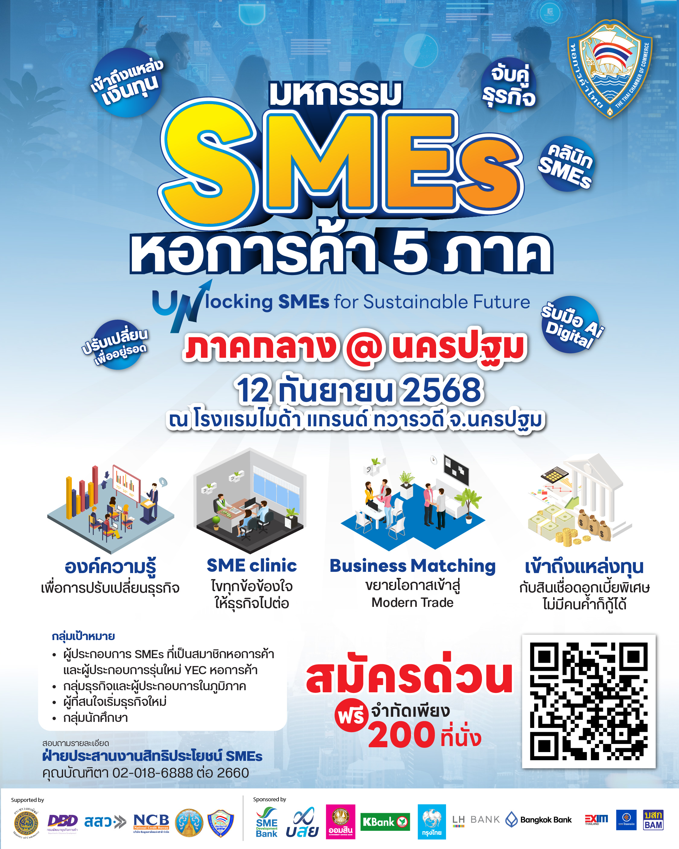 ใกล้แล้ว!! กับงานมหกรรม SMEs หอการค้า 5 ภาค ครั้งแรก ที่จังหวัดกำแพงเพชร ภายใต้ Theme "Unlocking SMEs for Sustainable Future" แต่ก่อนที่จะถึงวันงาน เราพามาดูที่มาที่ไป รวมทั้งจะเกิดอะไรขึ้นในงานบ้าง