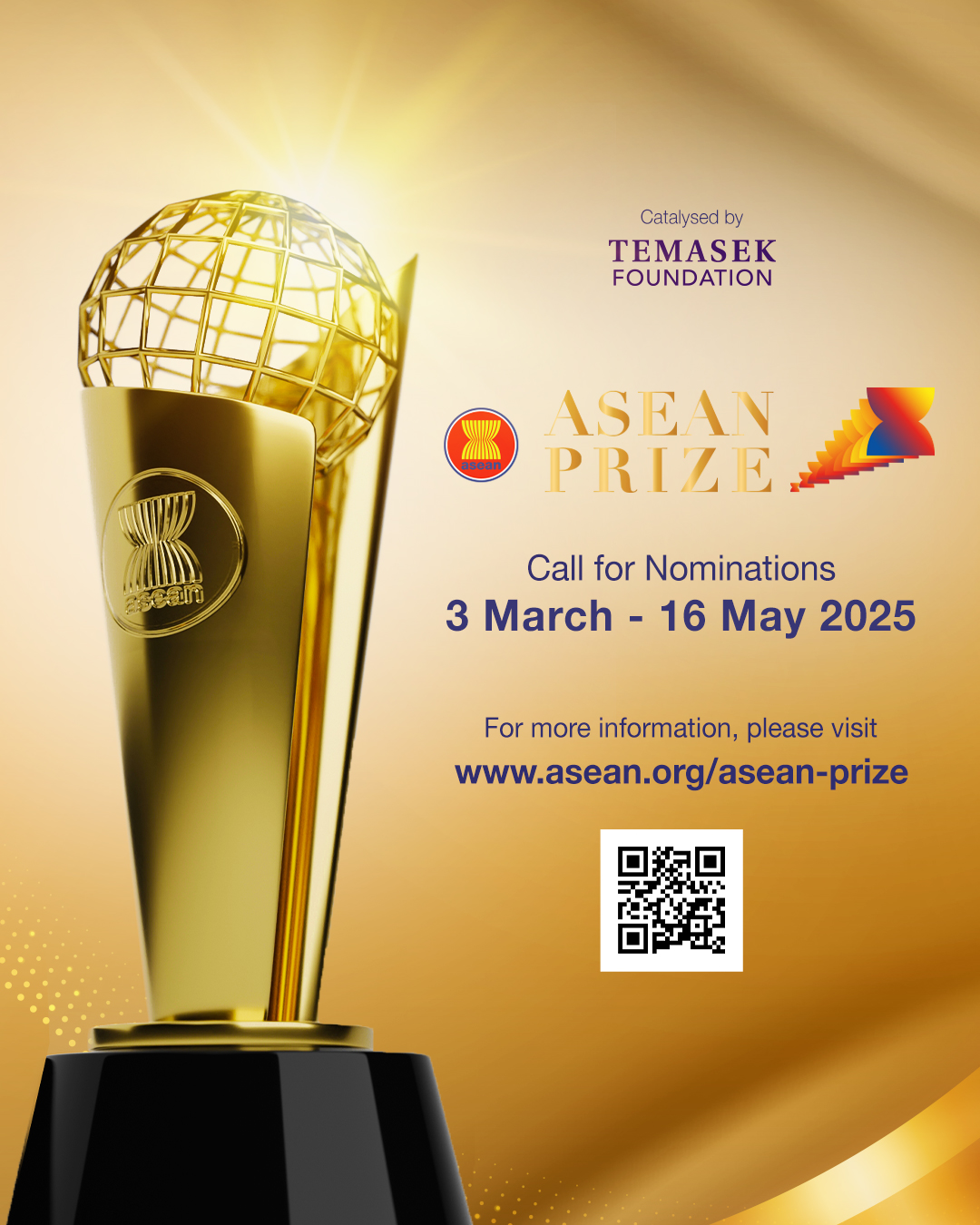 รางวัล ASEAN Prize จึงเป็นสัญลักษณ์ของการให้เกียรติแก่บุคคลและองค์กรที่มีบทบาทสำคัญในการเสริมสร้างประชาคมอาเซียนให้มีความเข้มแข็งและเป็นปึกแผ่นมากยิ่งขึ้น ซึ่งได้เปิดรับสมัคร ตั้งแต่วันนี้ - วันที่ 16 พฤษภาคม 2568