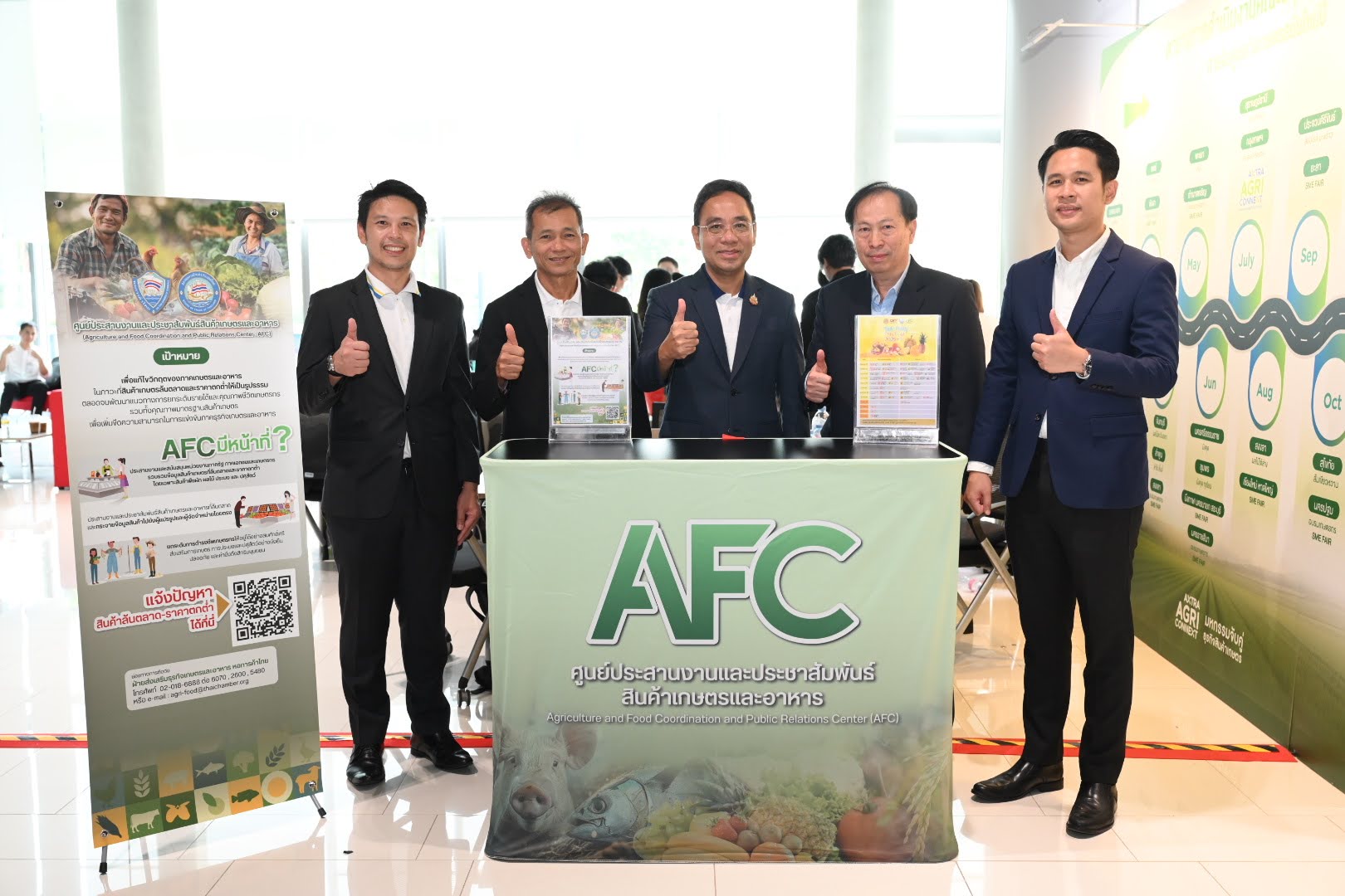 พร้อมทั้ง ยังได้จัดตั้งศูนย์ประสานงานและประชาสัมพันธ์สินค้าเกษตรและอาหาร หรือ AFC โดยมีบทบาทหน้าที่ที่สำคัญเพื่อแก้ไขปัญหาสินค้าเกษตรราคาตกต่ำ - ล้นตลาดของประเทศไทยอย่างเป็นรูปธรรม ด้วยความร่วมมือจากหน่วยงานภาครัฐและภาคเอกชน ทั้ง 28 หน่วยงาน ผ่านความร่วมมือตั้งแต่ระดับราชการส่วนกลาง ราชการส่วนภูมิภาค และภาคเอกชน อาทิ เกษตรจังหวัด พาณิชย์จังหวัด หอการค้าจังหวัด สมาคมการค้าต่างๆ และค้าส่งสมัยใหม่ (Modern Trade) ให้สามารถมีช่องทางการขาย หรือต้องการจะทำ Contract Farming โดยขายให้กลุ่มผู้ค้าส่งสมัยใหม่ ภัตตาคาร ร้านอาหาร หรือโรงงานแปรรูป ซึ่ง กรมการค้าภายใน บ.ซีพี แอ็กซ์ตร้า และ ห้างค้าปลีกที่มาในวันนี้ เป็นเครือข่ายกำลังสำคัญของศูนย์ AFC ซึ่งได้ดำเนินการแก้ไขปัญหาสินค้าเกษตรราคาตกต่ำ-ล้นตลาด โดยคาดว่า ปี 2568 จะมีปริมาณซื้อผลไม้รวมมากกว่าประมาณ 10,000 ตัน ภายใต้โครงการ Thai Fruits Festival 2025 เพื่อช่วยเหลือเกษตรกรกระจายสินค้าไปยังผู้บริโภค ภัตตาคาร ร้านอาหาร ห้างค้าปลีกสมัยใหม่ เป็นต้น