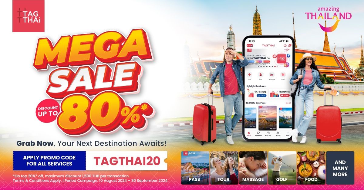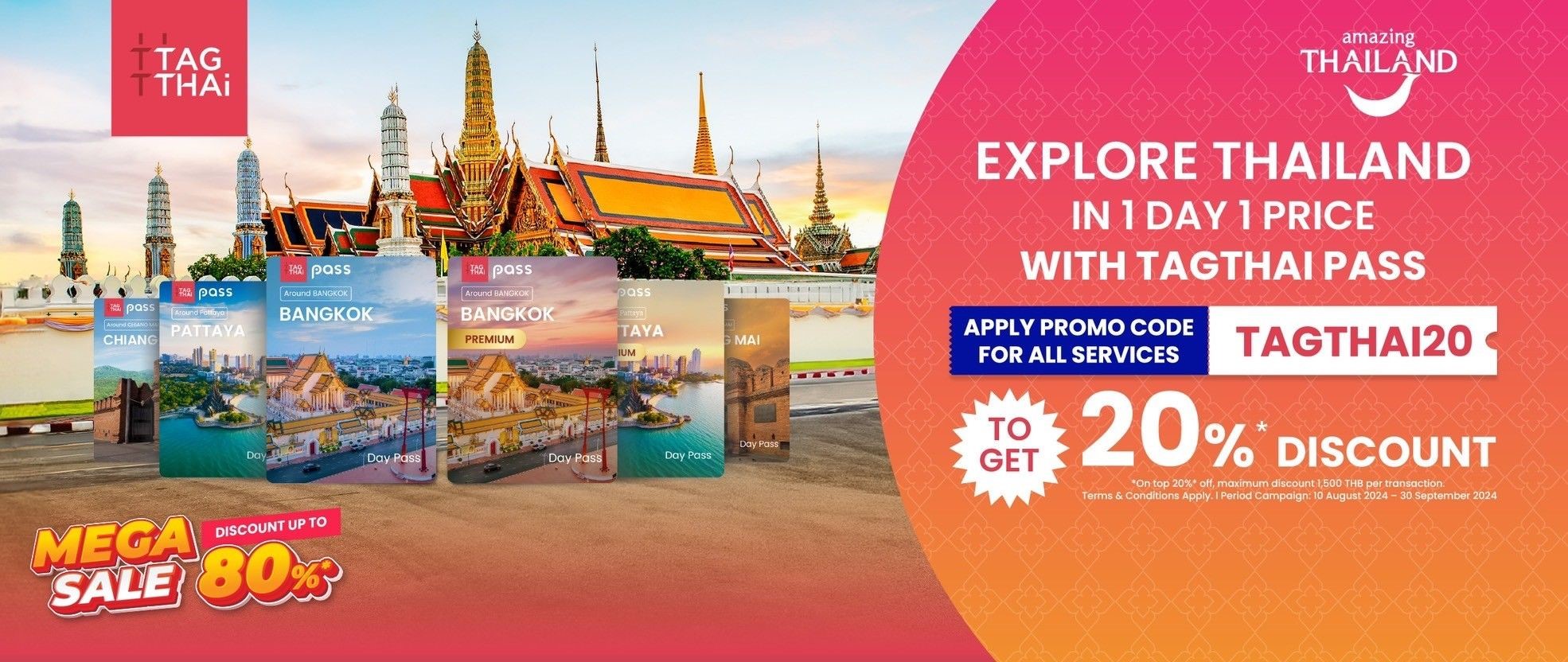 Starting from Today to September 30, 2024, TAGTHAi MEGA SALE is offering an unbelievable deal that you will regret to miss. All travelers can get a discount 20%* with a maximum discount of 1,500 THB per transaction for every TAGTHAi Pass, but still enjoy access to famous attractions, things-to-do and benefits we provided in each TAGTHAi Pass.