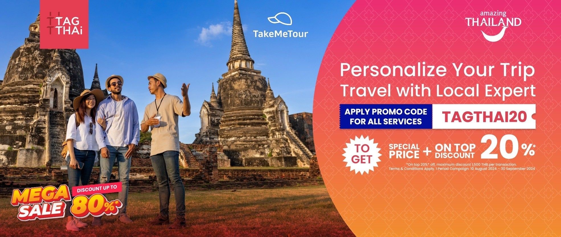 • Get 20% discount for TAGTHAi Pass, with a maximum discount of 1,500 THB per transaction