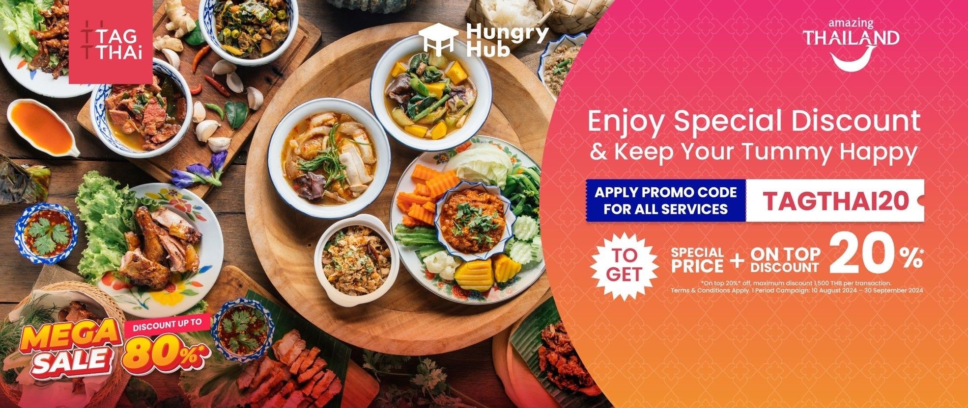 At Hungry Hub, you can taste and choose how you want to dine at over 1,000 restaurants nationwide. They offer a variety of flavors through unique, curated package deals. With TAGTHAi hot offer campaign, you can enjoy special price and on top 20%* discount for all bookings, a maximum discount of 1,500 THB per transaction when applying the code “TAGTHAI20” during checkout.
