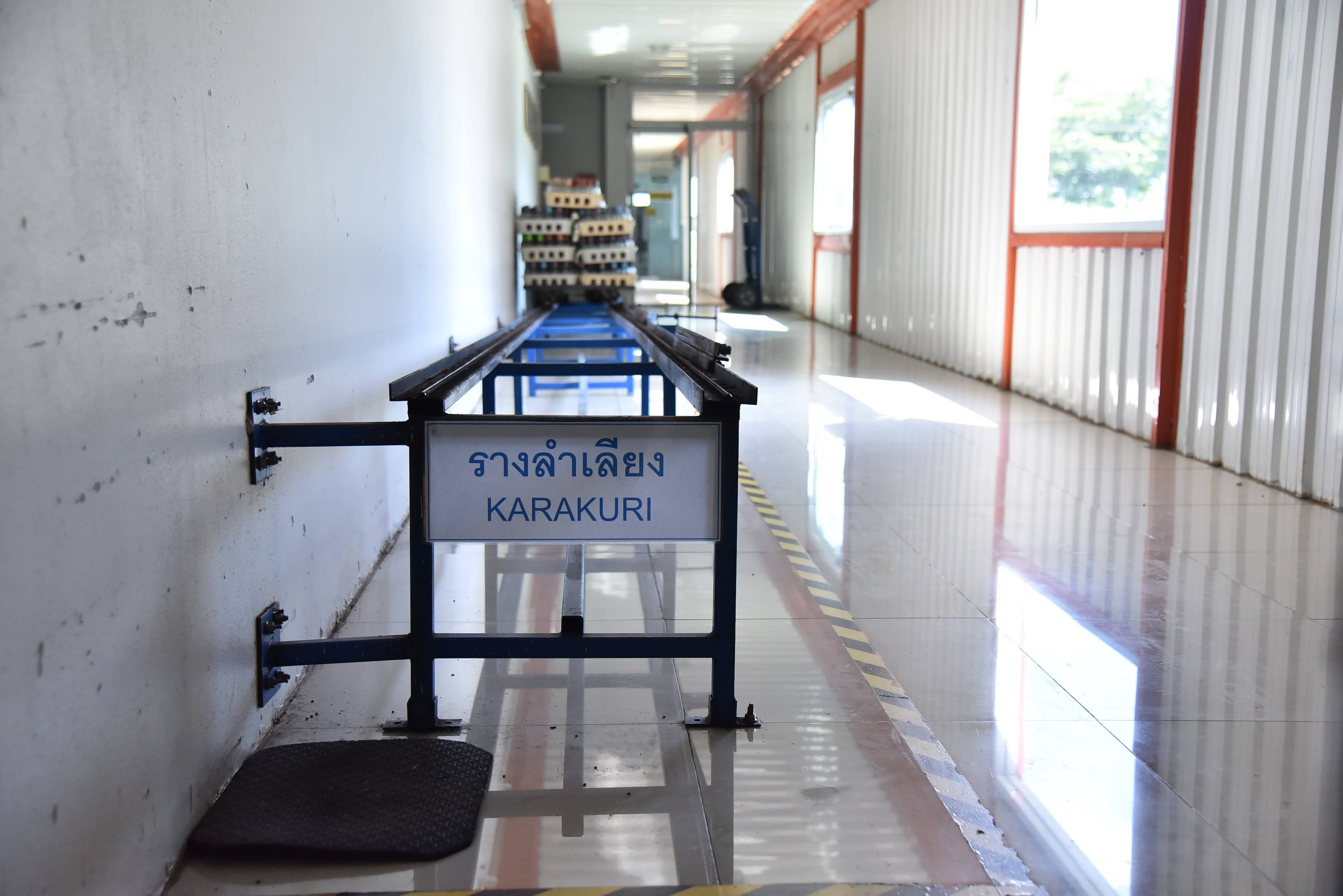 1. เพิ่มประสิทธิภาพในการผลิต โดยการออกแบบไลน์การผลิตใหม่ เปลี่ยนจากการทำงานเป็นจุดๆ มาเป็นการไลน์การทำงานต่อเนื่อง โดยใช้ระบบกลไก “คาราคุริ” มาออกแบบรางเลื่อน