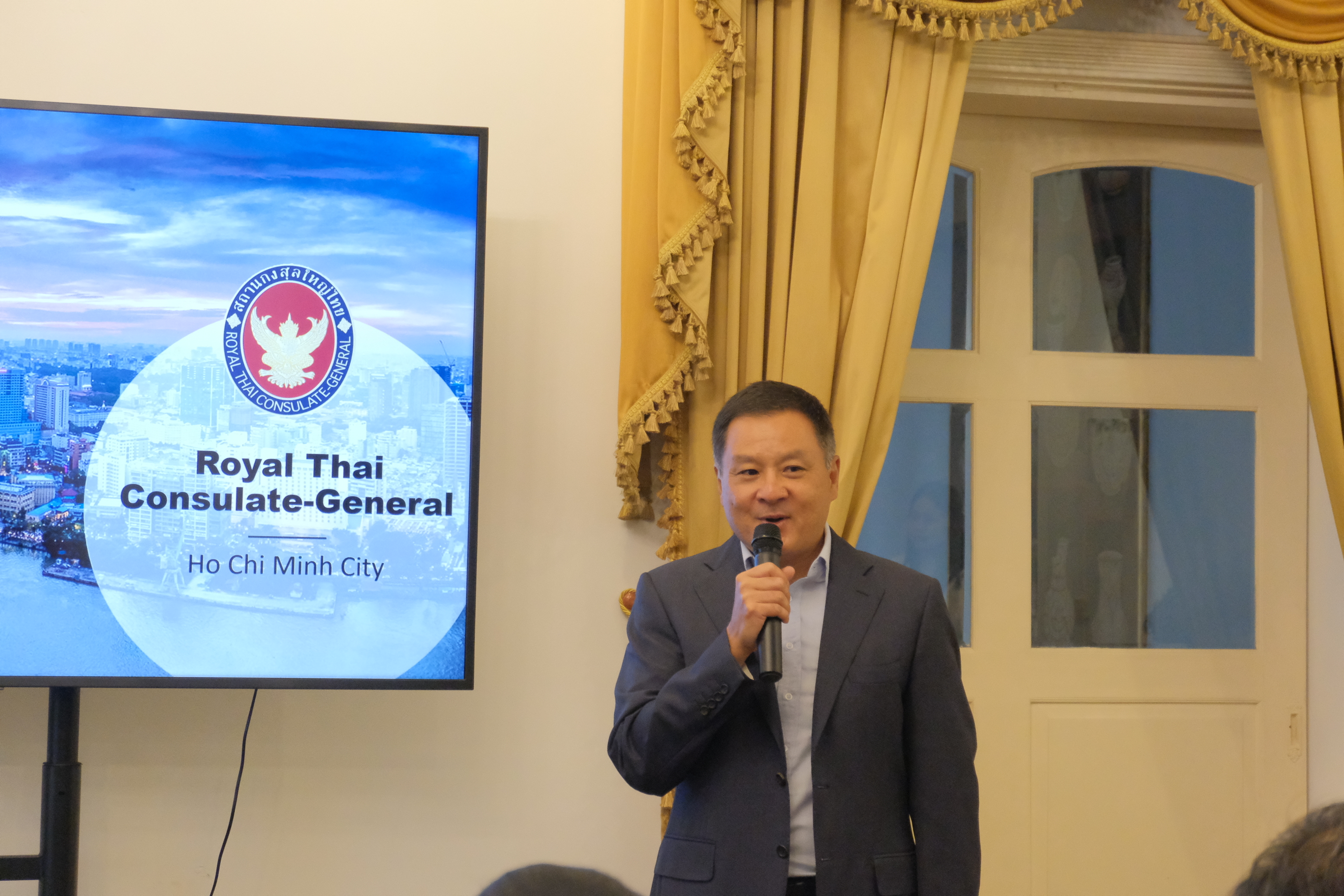 ในการนี้ ยังได้รับการสนับสนุนที่ดีจาก คุณวีรกา มุทิตาภรณ์ กงสุลใหญ่ ณ นครโฮจิมินห์ คุณจักรกริช เรืองขจร รองกงสุลใหญ่ ณ นครโฮจิมินห์ เป็นผู้แทนสถานกงสุลใหญ่ฯ บรรยายสรุปเกี่ยวกับความสัมพันธ์ไทย-เวียดนาม ด้านการเมือง การค้า การลงทุน และวัฒนธรรม ตลอดจนบทบาทและภารกิจของสถานกงสุลใหญ่ฯ ได้บรรยายถึงภาพรวมการเมืองการปกครอง เศรษฐกิจ การค้าและการลงทุน ตลอดจนอุตหกรรมการแปรรูปสินค้าเกษตร และพฤติกรรมผู้บริโภคของเวียดนามในนครโฮจิมินห์และเขตกงสุล