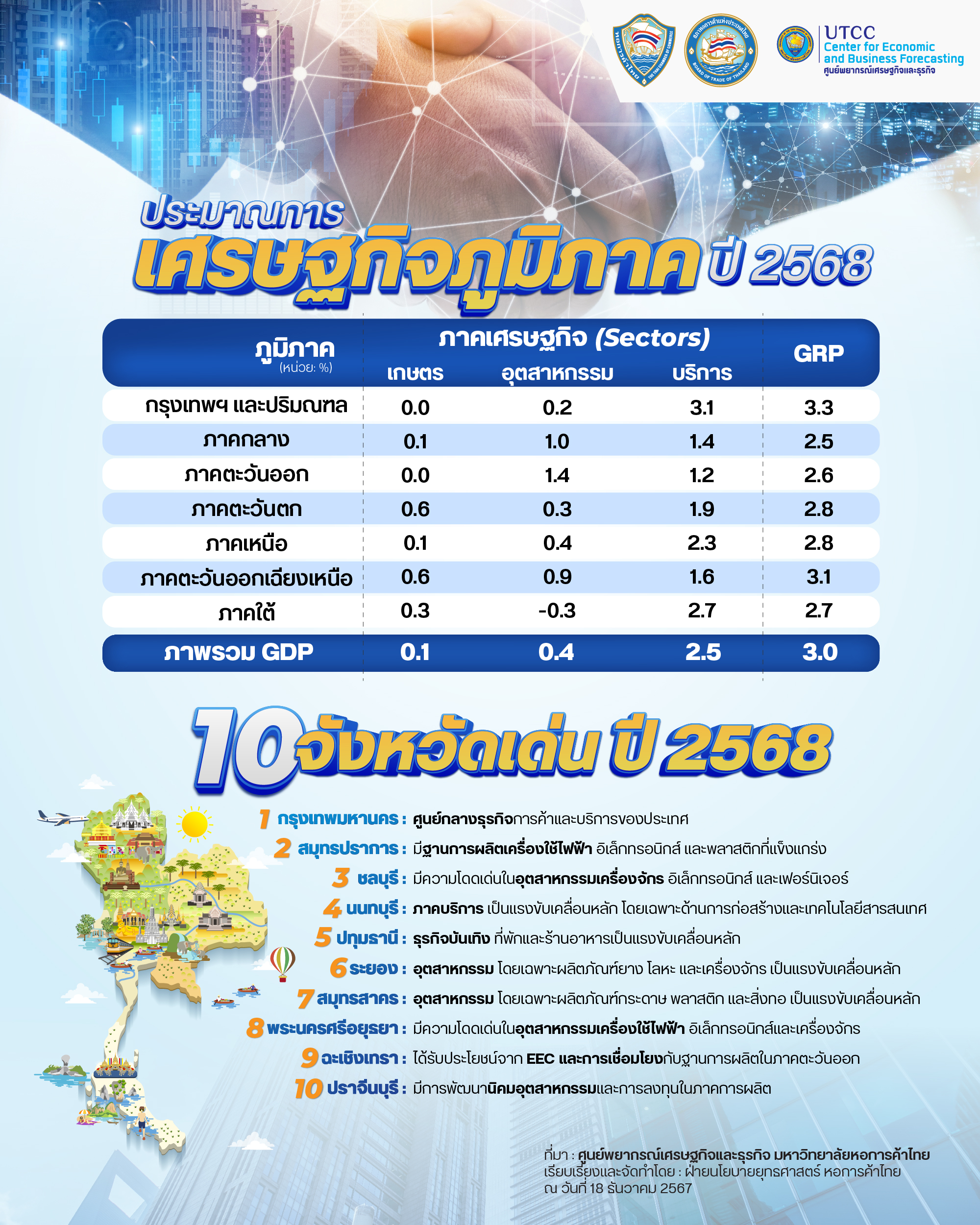 ประมาณการเศรษฐกิจภูมิภาคและ10 จังหวัดเด่น ปี 2568