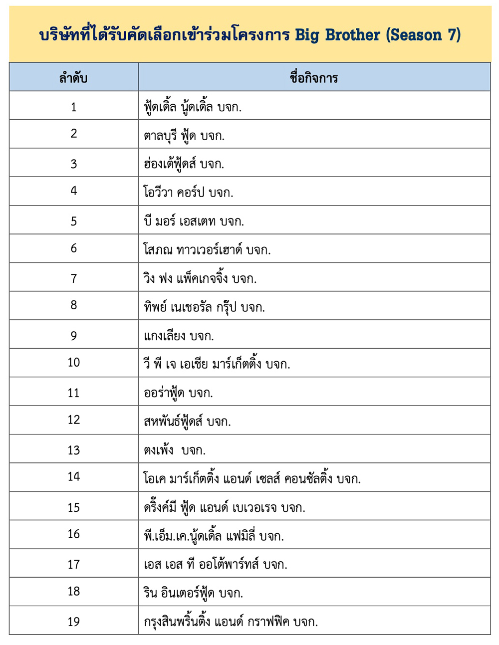 ประกาศรายชื่อผู้ผ่านการคัดเลือกโครงการ Big Brother Season 7