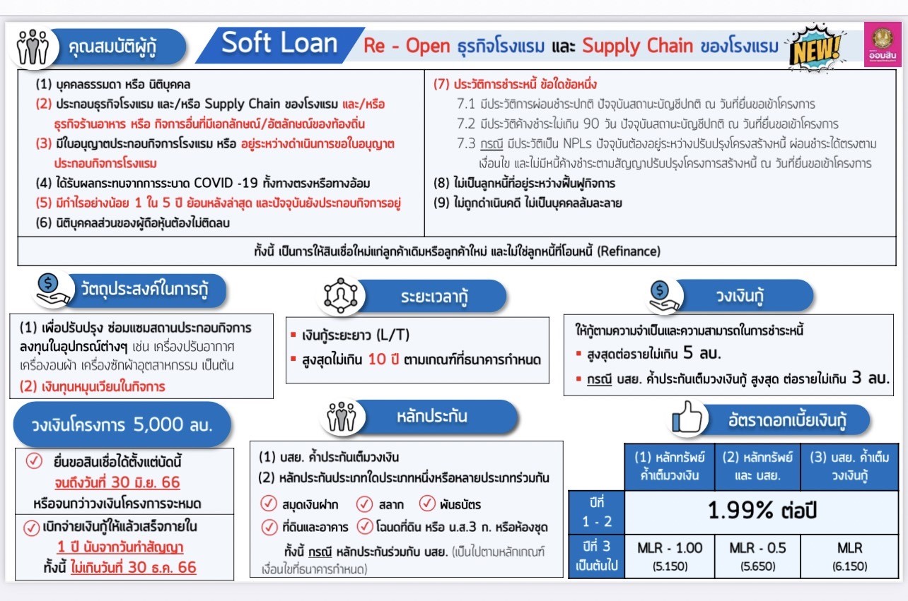 ขอประชาสัมพันธ์สินเชื่อดอกเบี้ยต่ำ Soft Loan Re – Open ธุรกิจโรงแรม