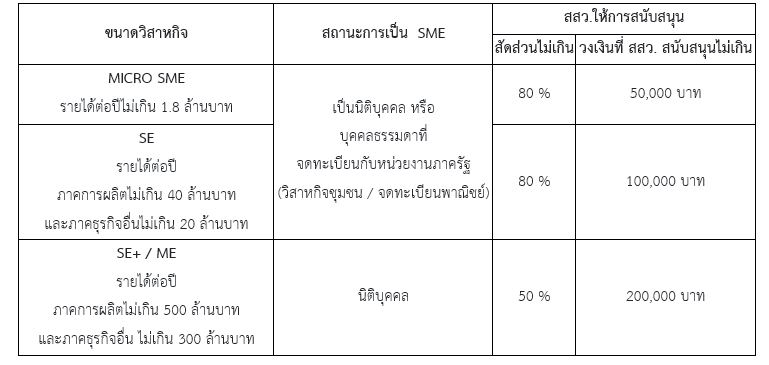 ผู้ประกอบการ SME ที่เป็นนิติบุคคล หรือผู้ประกอบการ SME ที่จดทะเบียนกับหน่วยงานภาครัฐ