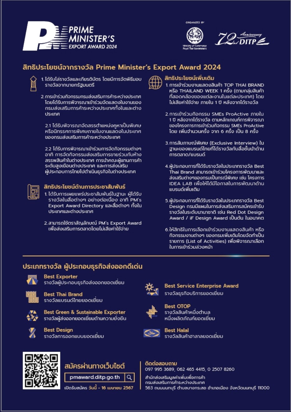 ผู้ที่สนใจสามารถศึกษารายละเอียดและสมัครได้ผ่านเว็บไซต์ https://pmaward.ditp.go.th/
