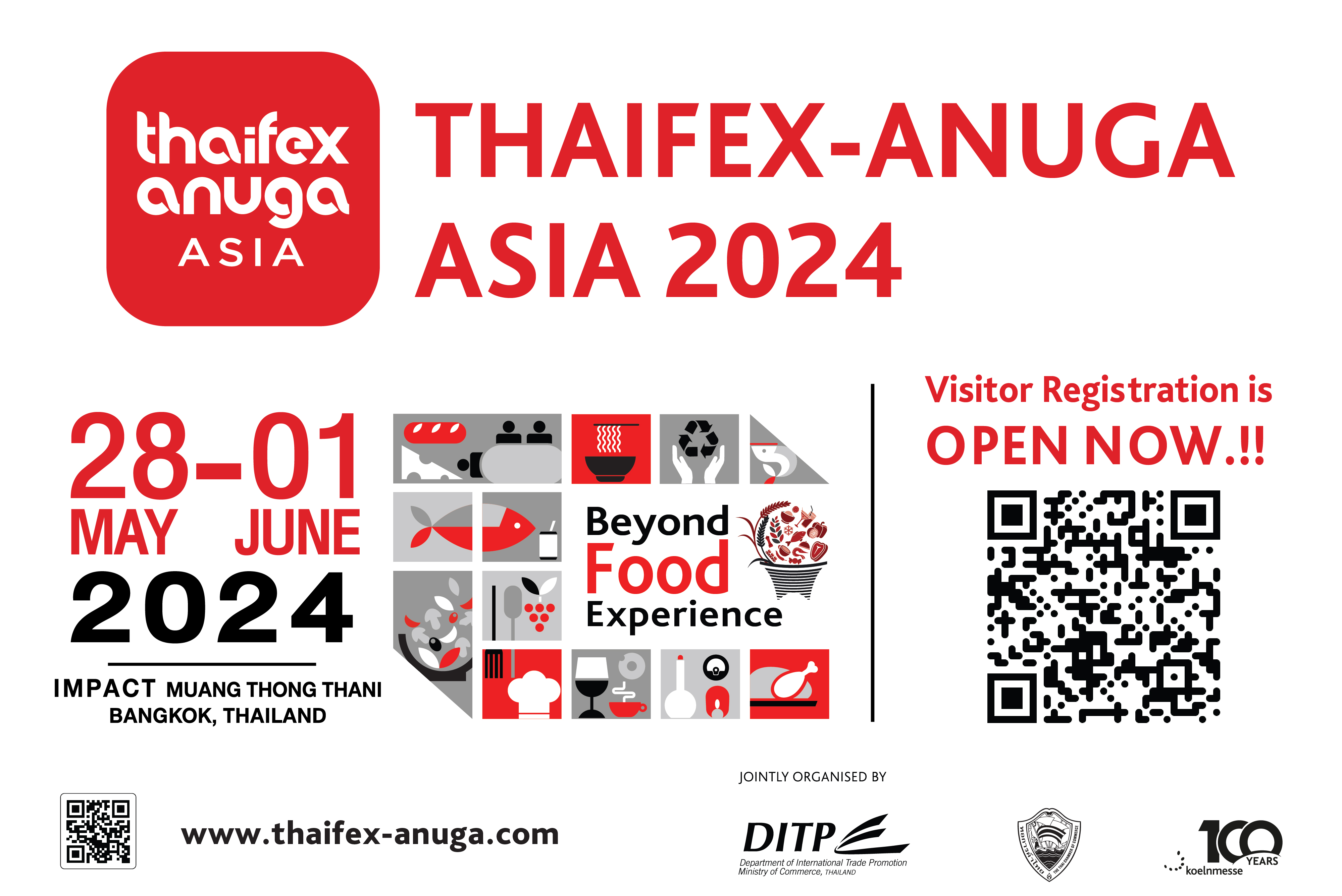 กรมส่งเสริมการค้าระหว่างประเทศ (DITP) กระทรวงพาณิชย์ หอการค้าไทย และโคโลญเมสเซ่ เยอรมนี ประกาศจัดงานแสดงสินค้าอาหารและเครื่องดื่มที่ใหญ่และครบวงจรที่สุดในเอเชีย “THAIFEX – ANUGA ASIA 2024” ในวันที่ 28 พฤษภาคม – 1 มิถุนายน 2567 ณ อิมแพ็ค เมืองทองธานี ภายใต้แนวคิด Beyond Food Experience ที่เป็นมากกว่างานแสดงสินค้าอาหาร โดยเปิดโอกาสให้ผู้ประกอบธุรกิจอาหารและเครื่องดื่ม ร้านค้าปลีก ซูเปอร์มาร์เก็ต ห้างสรรพสินค้า โรงแรม ซูเปอร์สโตร์ ร้านอาหาร และผู้ที่กำลังมองหาไอเดียในการทำธุรกิจ ได้มาค้นหาคู่ค้า และเจรจาธุรกิจกับผู้ประกอบการชั้นนำทั้งไทยและต่างประเทศ พร้อมอัปเดตเทรนด์สินค้า และแนวโน้มความต้องการของผู้บริโภค เพื่อต่อยอดสู่ความสำเร็จที่มากขึ้น เปิดเจรจาธุรกิจทั้ง 5 วัน และเปิดให้ประชาชนทั่วไปเข้าชมและซื้อสินค้าได้ในวันสุดท้ายของการจัดงาน