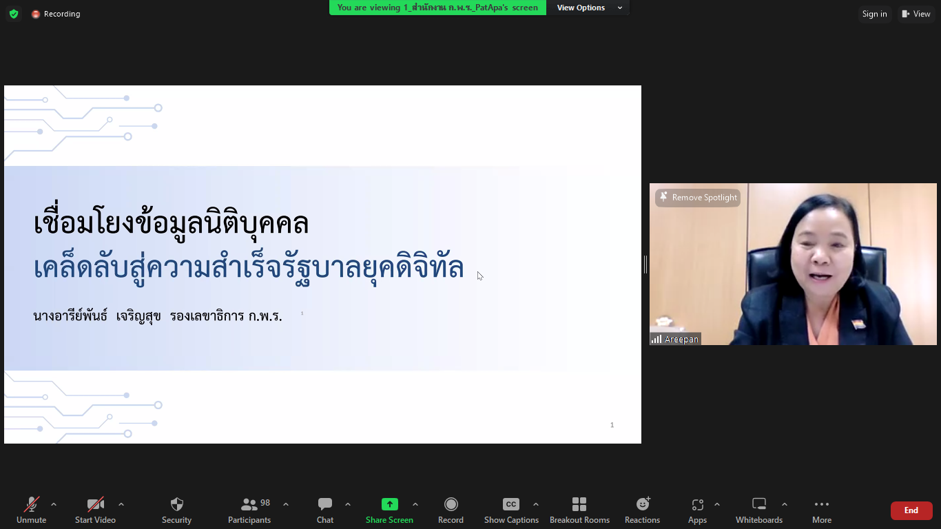 บรรยาย หัวข้อ “ความสำเร็จ!! การเชื่อมโยงข้อมูลนิติบุคคล 10 หน่วยงานภาครัฐ”