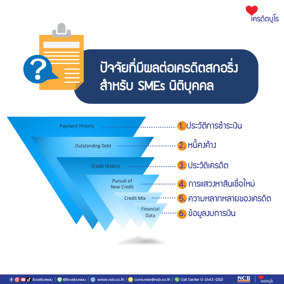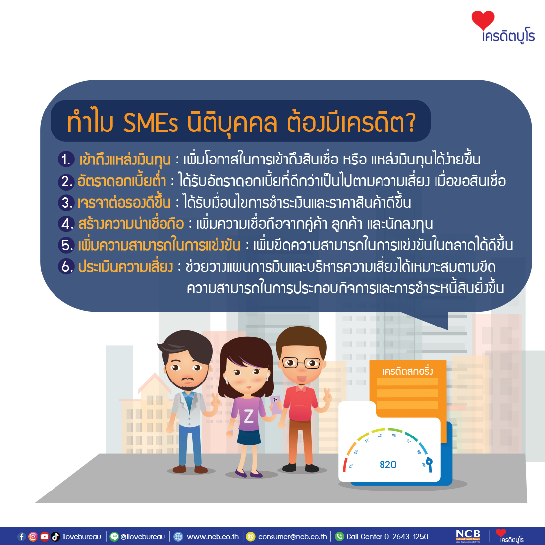 - ทำไม SMEs นิติบุคคล ต้องมีเครดิต (เข้าถึงแหล่งเงินทุน อัตราดอกเบี้ยต่ำ เจรจาต่อรองดีขึ้น สร้างความน่าเชื่อถือ เพิ่มความสามารถในการแข่งขัน ประเมินความเสี่ยง)