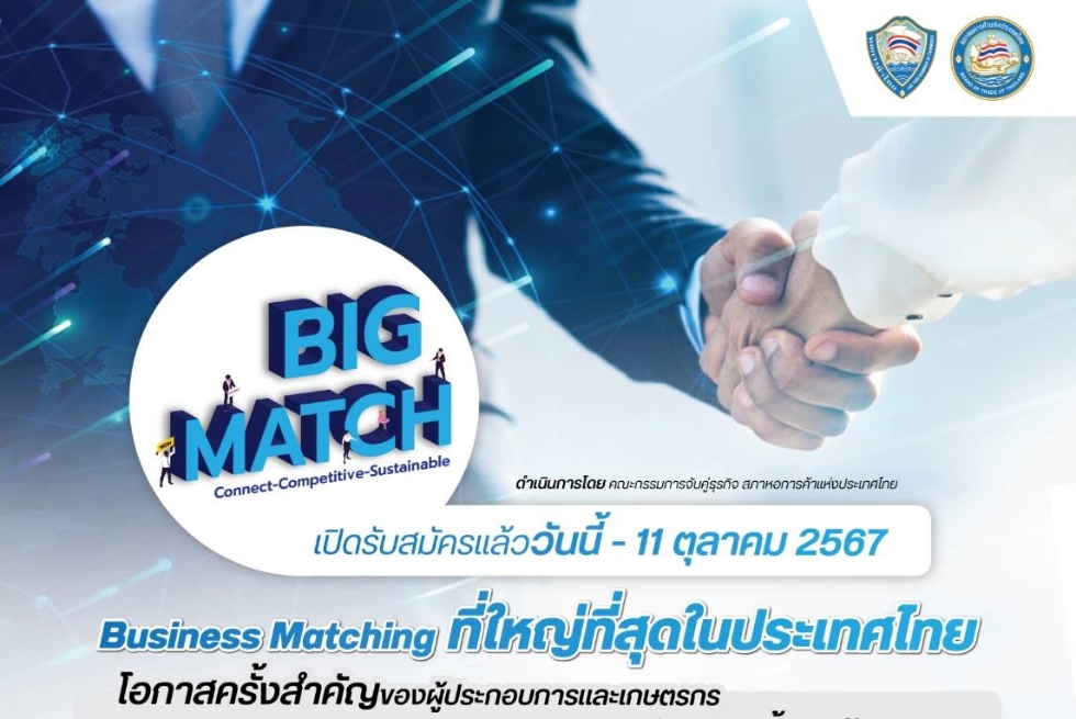 หอการค้าไทยและสภาหอการค้าแห่งประเทศไทยขอเชิญท่านเข้าร่วมกิจกรรม "Big Match" การเจรจาจับคู่ธุรกิจกับห้าง Modern Trade ที่สร้างโอกาสทางการตลาดให้แก่ผู้ประกอบการและเกษตรกรไทย
