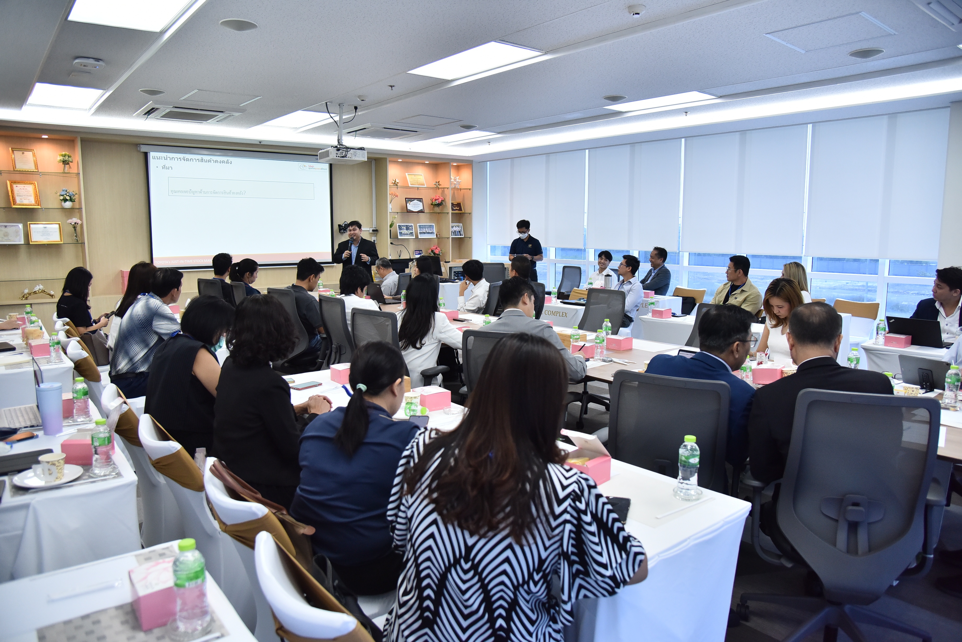 • ในช่วงเช้า บริษัท โตโยต้า ประเทศไทย จำกัด (มหาชน)  ได้รับเกียรติจากคุณสบโชค จิรเสรีอมรกุล หัวหน้าวิศวกร ฝ่ายวางแผนองค์กร และ คุณจิรวัฒน์ คงกล่ำ ผู้จัดการโครงการ ฝ่ายพัฒนาธุรกิจ มาบรรยายในหัวข้อ"การบริหารจัดการสินค้าคงคลังแบบพอดีเวลา และ หลักการจัดการสินค้าคงคลังหน้างานแบบฉบับโตโยต้า"