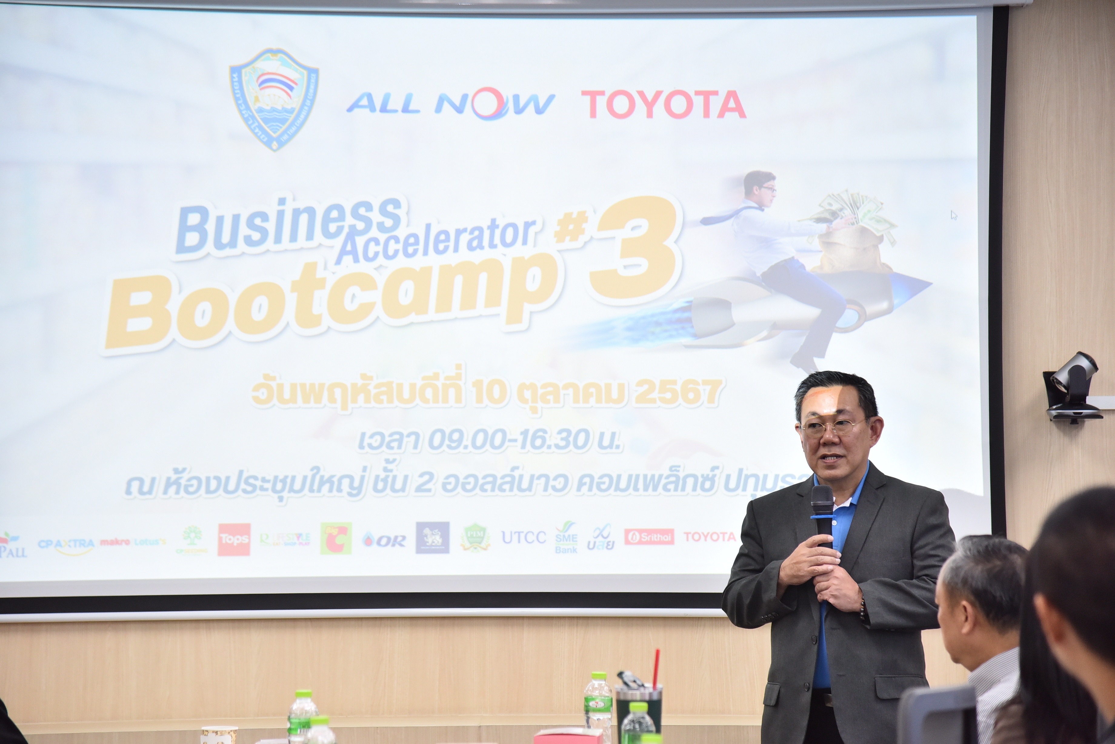 กิจกรรม BA Bootcamp ครั้งที่ 3 ในวันพฤหัสบดีที่ 10 ตุลาคม 2567 ณ All Complex อ.ลาดหลุมแก้ว จ.ปทุมธานี เป็นกิจกรรมที่พาผู้ประกอบการเข้าเยี่ยมชมการบริหารจัดการด้าน Logistics โดยมี คุณจาตุกร ชาติยานนท์ ผู้ช่วยกรรมการผู้จัดการ สายงานบริหารโลจิสติกส์ Logistics กล่าวต้อนรับผู้ประกอบการ และ คุณกมล พงษ์ประยูร ที่ปรึกษา บริษัท ซีพี ออลล์ จำกัด (มหาชน) กล่าวขอบคุณทาง All Now และ Toyota พร้อมให้แนวทางในการเตรียมความพร้อมในการเรียนรู้กับกิจกรรมต่างๆ ในวันนี้