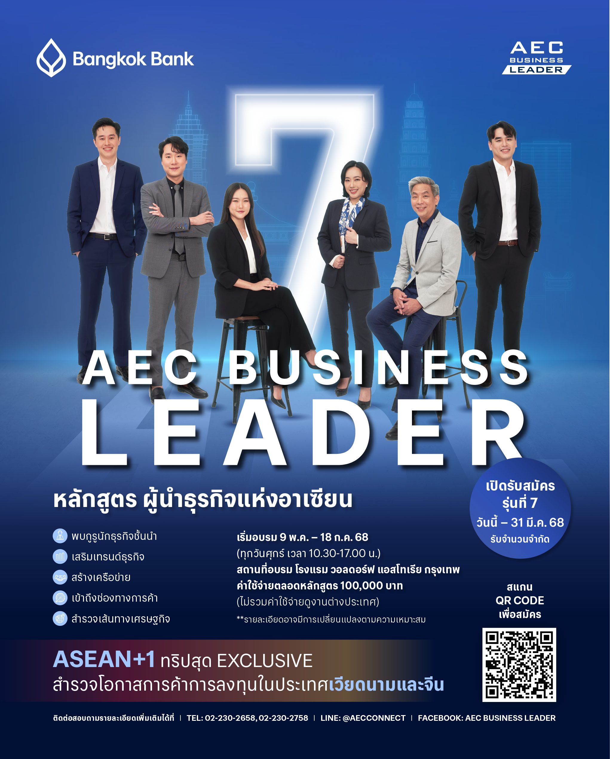 เปิดรับสมัครอบรมโครงการ AEC Business Leader รุ่นที่ 7 ของธนาคารกรุงเทพฯ