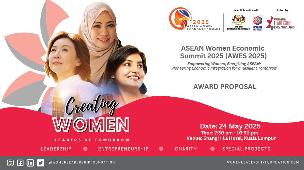 มูลนิธิผู้นำสตรี (Women Leadership Foundation - WLF) ซึ่งเป็นองค์กรไม่แสวงหาผลกำไร ได้ร่วมมือกับ กระทรวงการลงทุน การค้า และอุตสาหกรรมแห่งมาเลเซีย (MITI) ในการจัดงาน ASEAN Women Economic Summit 2025 (AWES 2025) ภายใต้ธีม "Empowering Women, Energizing ASEAN: Pioneering Economic Integration for a Resilient Tomorrow" ระหว่างวันที่ 24-25 พฤษภาคม 2568 ณ โรงแรมแชงกรี-ลา กัวลาลัมเปอร์ ประเทศมาเลเซีย