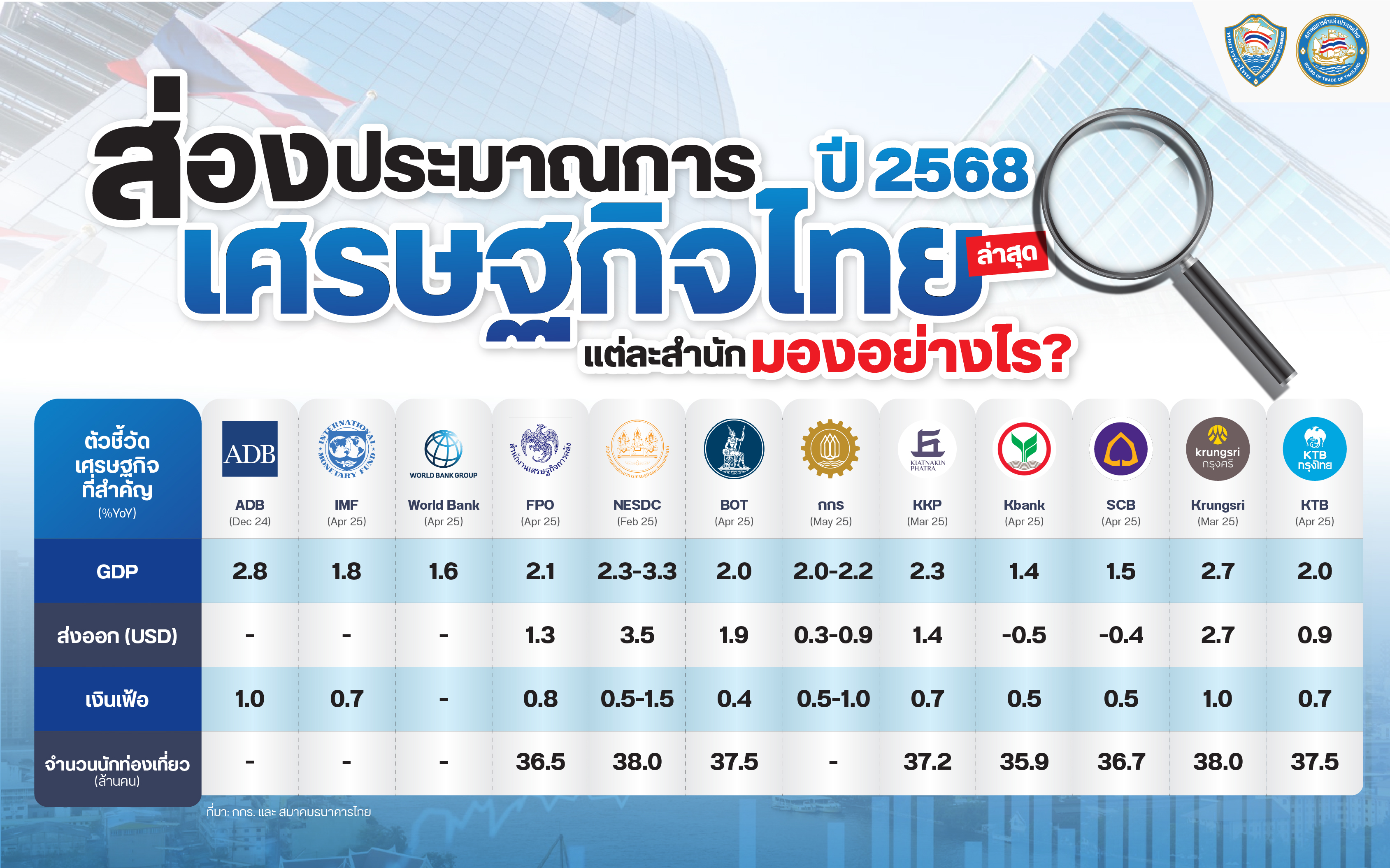 ส่องประมาณการเศรษฐกิจไทย ปี 2568 ล่าสุด แต่ละสำนักมองอย่างไร?