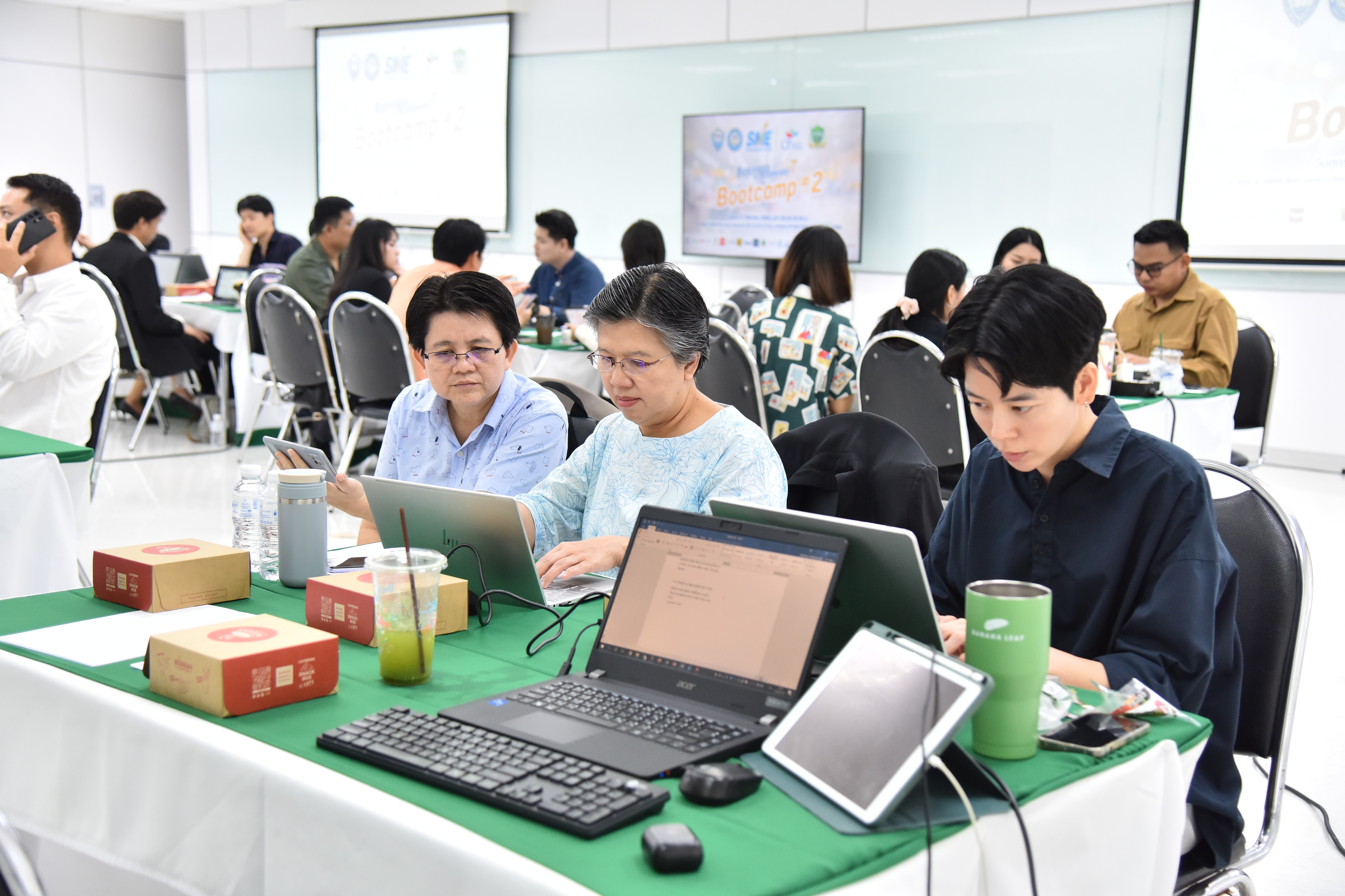 กิจกรรม BA Bootcamp ครั้งที่ 1 ได้รับเกียรติจาก อาจารย์นภเกตน์ สายสมบัติ รองคณบดีฝ่ายบริหาร คณะการจัดการธุรกิจอาหาร สถาบันการจัดการปัญญาภิวัฒน์ กล่าวต้อนรับผู้ประกอบการที่ผ่านการคัดเลือกกว่า 26 บริษัท พร้อมเน้นย้ำถึงความสำคัญของการเรียนรู้กลยุทธ์ที่แม่นยำในการเจาะตลาดโมเดิร์นเทรด นอกจากนี้ ยังได้กล่าวขอบคุณคณะอาจารย์จากสถาบันการจัดการปัญญาภิวัฒน์ รวมถึง คุณสถาปนะ เลี้ยวประไพ กรรมการและเลขานุการคณะกรรมการเพิ่มความเข้มแข็งให้สมาชิก หอการค้าไทย ที่ร่วมเป็นส่วนหนึ่งในการขับเคลื่อนกิจกรรมครั้งนี้