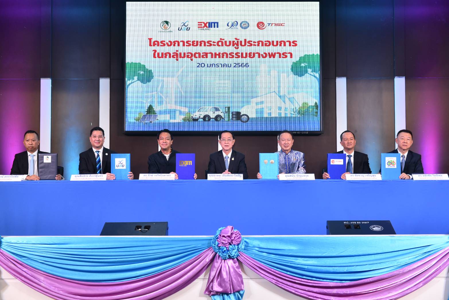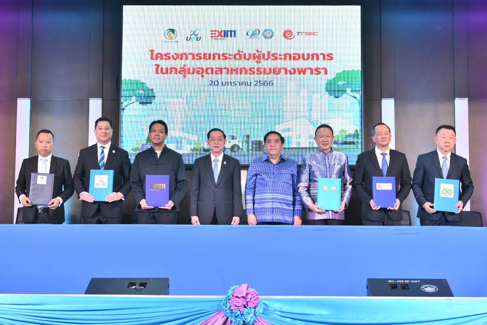นายอาคม เติมพิทยาไพสิฐ รมว.คลัง กล่าวว่า ที่ผ่านมาประเทศไทยถือเป็นผู้ผลิตและส่งออกยางพาราและสินค้ายางพารา เป็นอันดับ 1 ของโลก มีเกษตรกรชาวสวนยาง และผู้ที่ทำงานเกี่ยวข้องกับอุตสาหกรรมยางพารา ทั้งหมด 6 ล้านคน พื้นที่สวนยางกว่า 18 ล้านไร่ มูลค่าการส่งออกยางพาราและผลิตภัณฑ์ยางพารามากกว่า 680,000 ล้านบาทต่อปี ดังนั้น การลงนามในหนังสือแสดงเจตจำนงของทุกหน่วยงานในครั้งนี้ จึงมีความสำคัญอย่างยิ่งที่จะมีส่วนช่วยยกระดับชีวิตความเป็นอยู่ของเกษตรกรชาวสวนยาง ด้วยการส่งเสริมสินค้าและการบริหารจัดการตามแนวคิด BCG ทำให้เกิดการสร้างมูลค่าเพิ่มในภาคการส่งออกสินค้ายางพาราของไทย รวมถึงการให้ความรู้ด้านการบริหารการเงิน การจัดหาเงินทุน การประชาสัมพันธ์ข้อมูลข่าวสารและโอกาสทางธุรกิจแก่ผู้ประกอบการทุกระดับภายใต้ความร่วมมือระหว่าง 6 หน่วยงาน ทั้งภาครัฐและเอกชน ซึ่งโครงการดังกล่าวจะเป็นต้นแบบให้กับอุตสาหกรรมอื่นของประเทศที่ต้องอาศัยเครือข่ายในการขยายผลให้ครอบคลุมทุกซัพพลายเชน