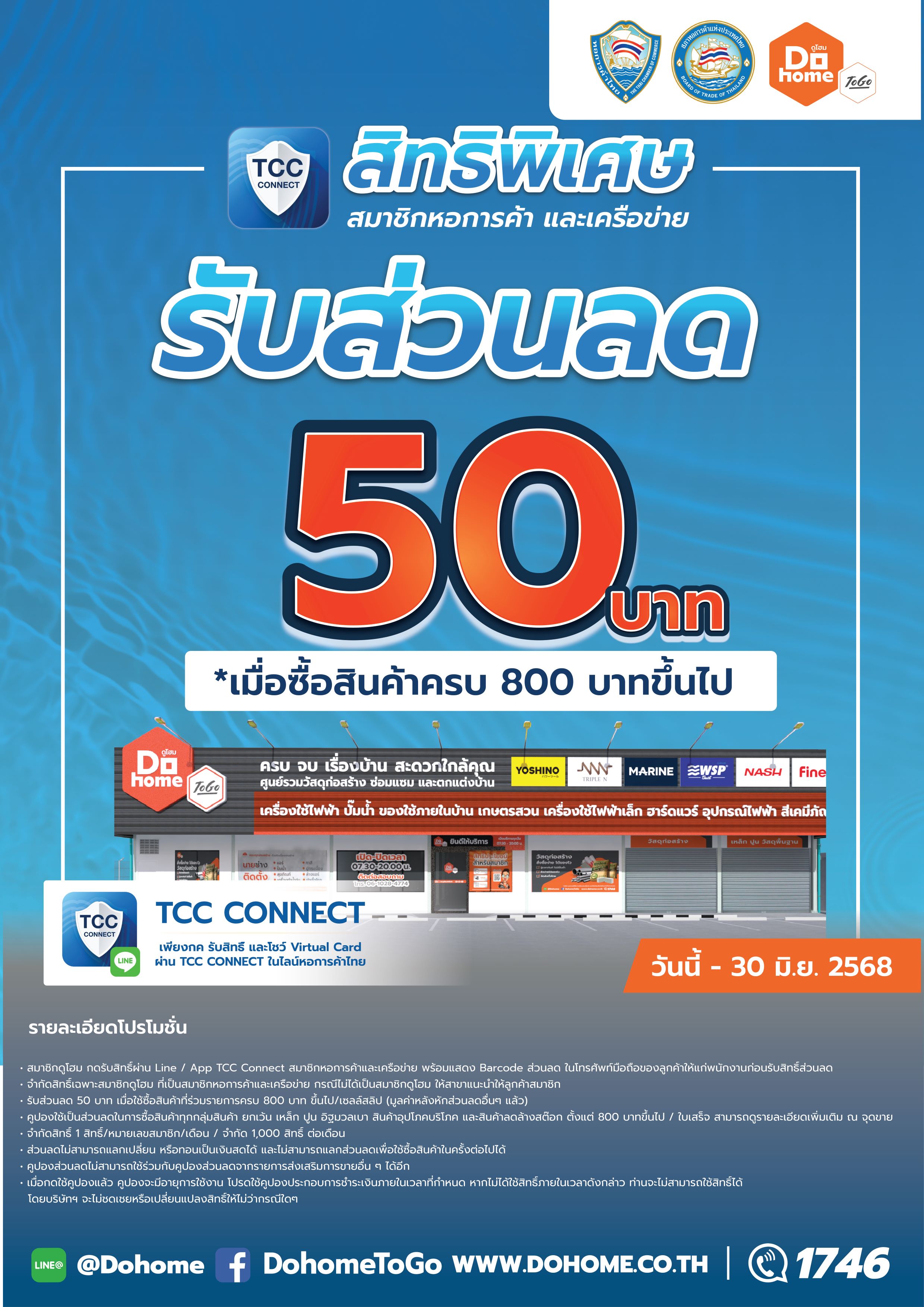 2. ดูโฮม ทูโก รับสวนลด 50 บาท เมื่อซื้อสินค้าที่ร่วมรายการครบ 800 บาทขึ้นไป / สิทธิ์ / เดือน