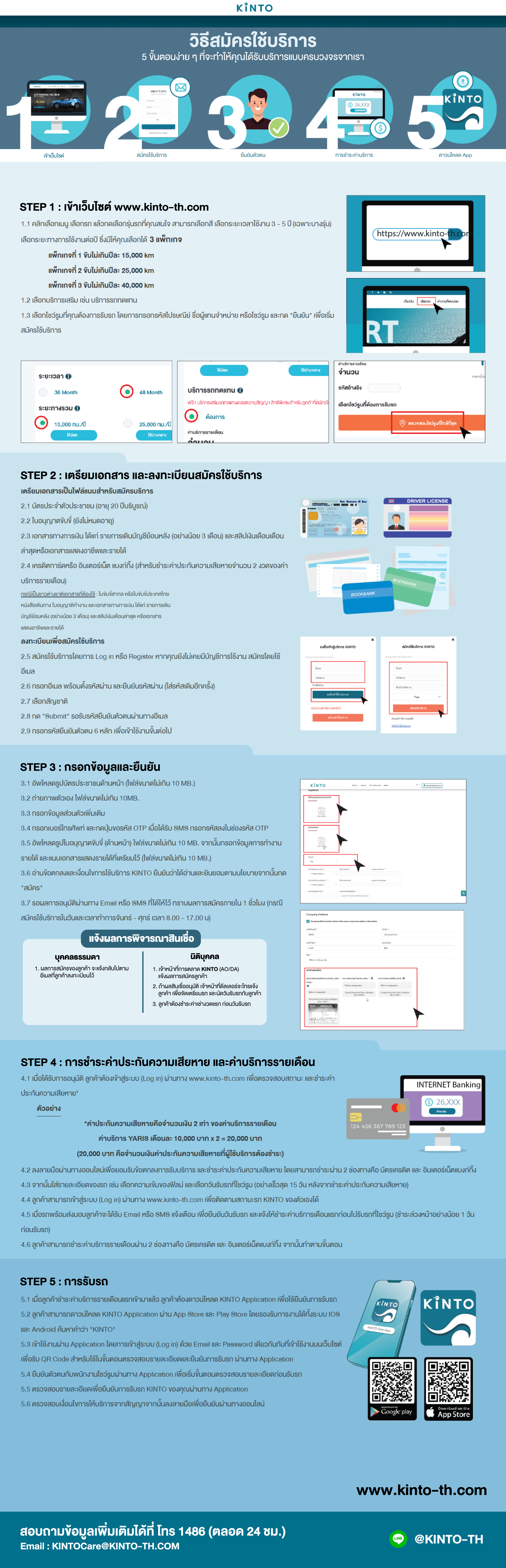 สอบถามข้อมูลเพิ่มเติมได้ที่ KINTO ONE Call Center 1468