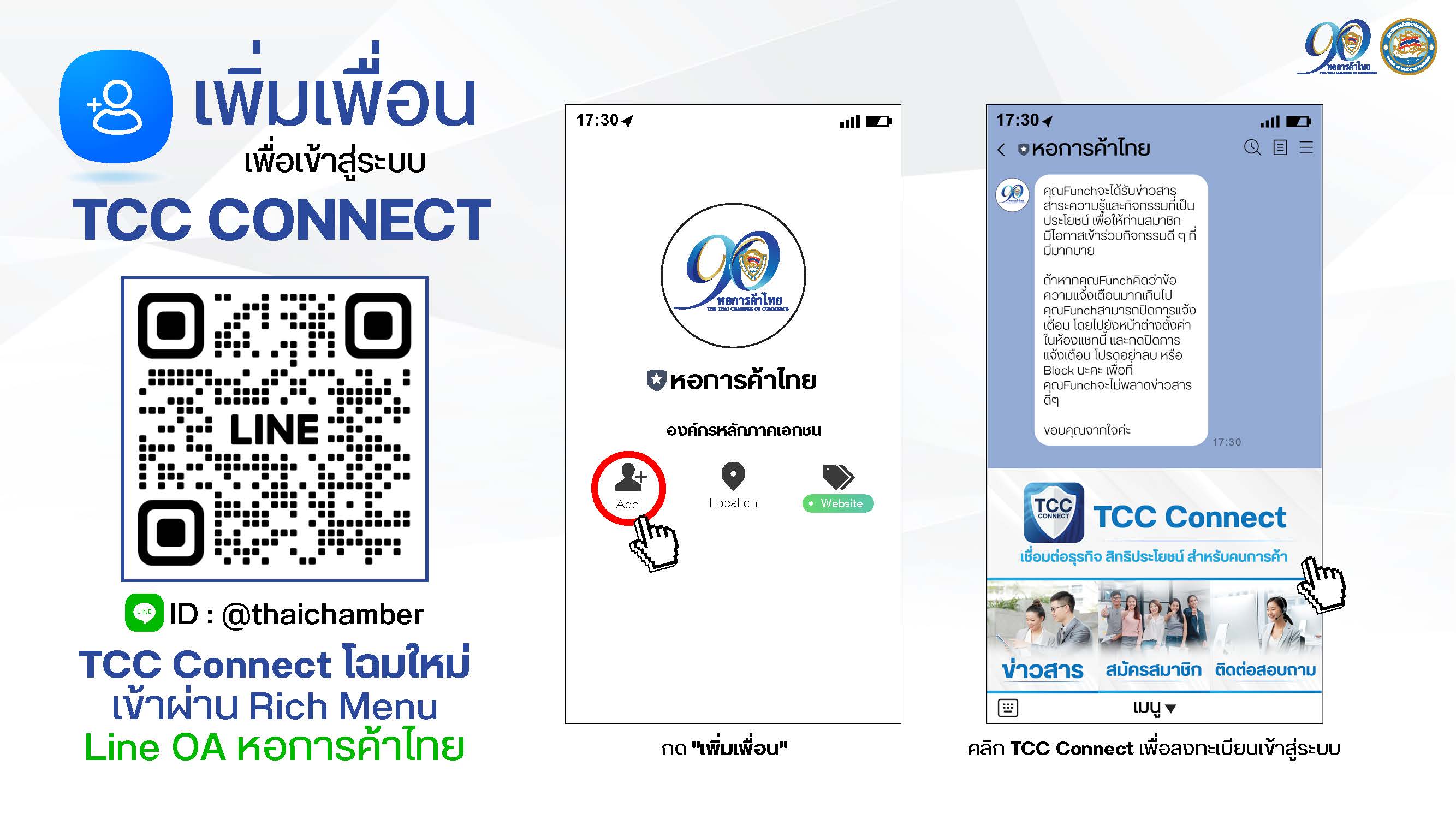 1) เข้า TCC CONNECT ผ่านระบบไลน์หอการค้าไทย เมนูสิทธิประโยชน์และบริการ