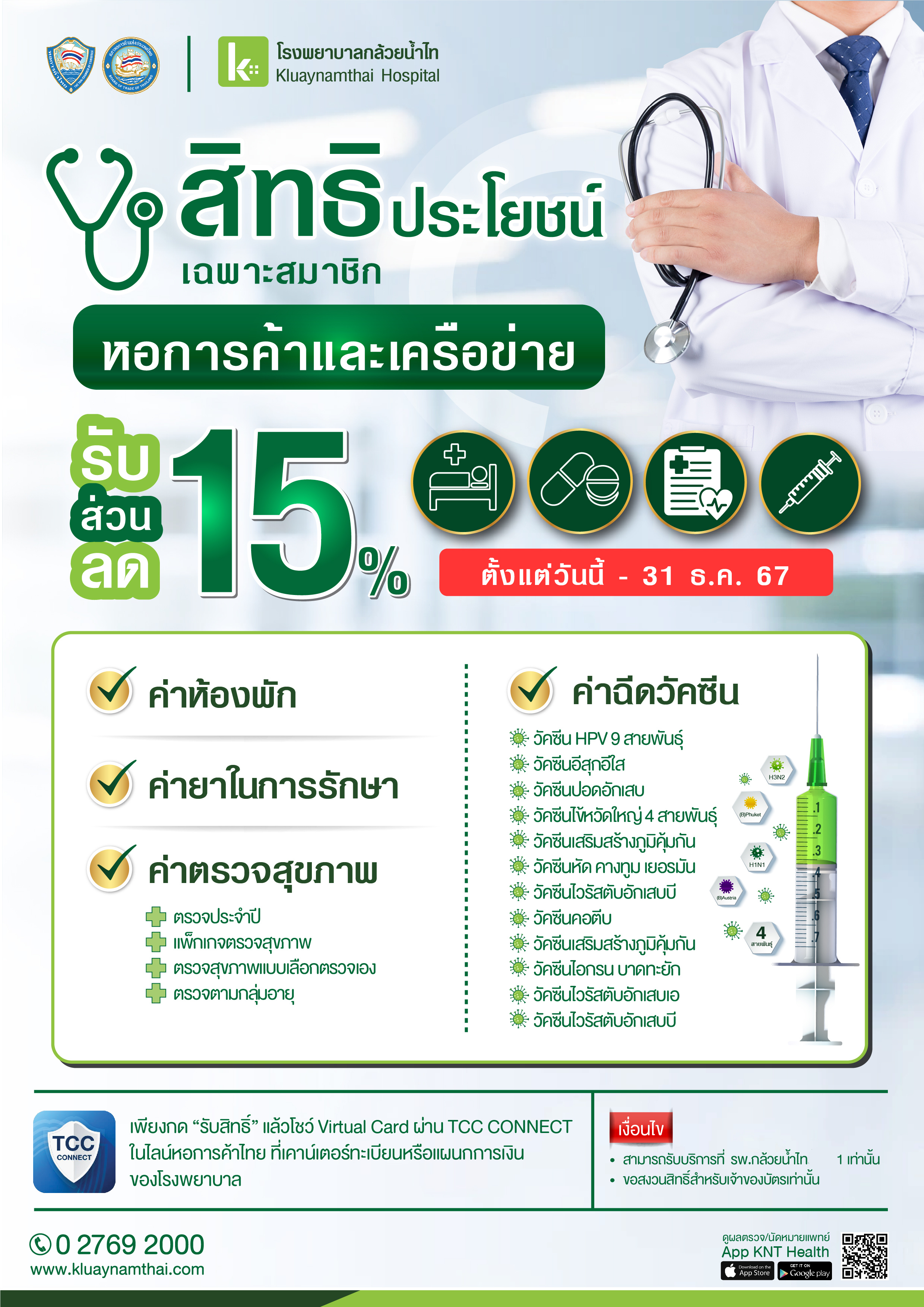 1. ตรวจสุขภาพประจำปี ตามกลุ่มอายุ ใช้เป็นส่วนลดสามารถตรวจสุขภาพตามกลุ่มอายุส่วนลด 15 %
