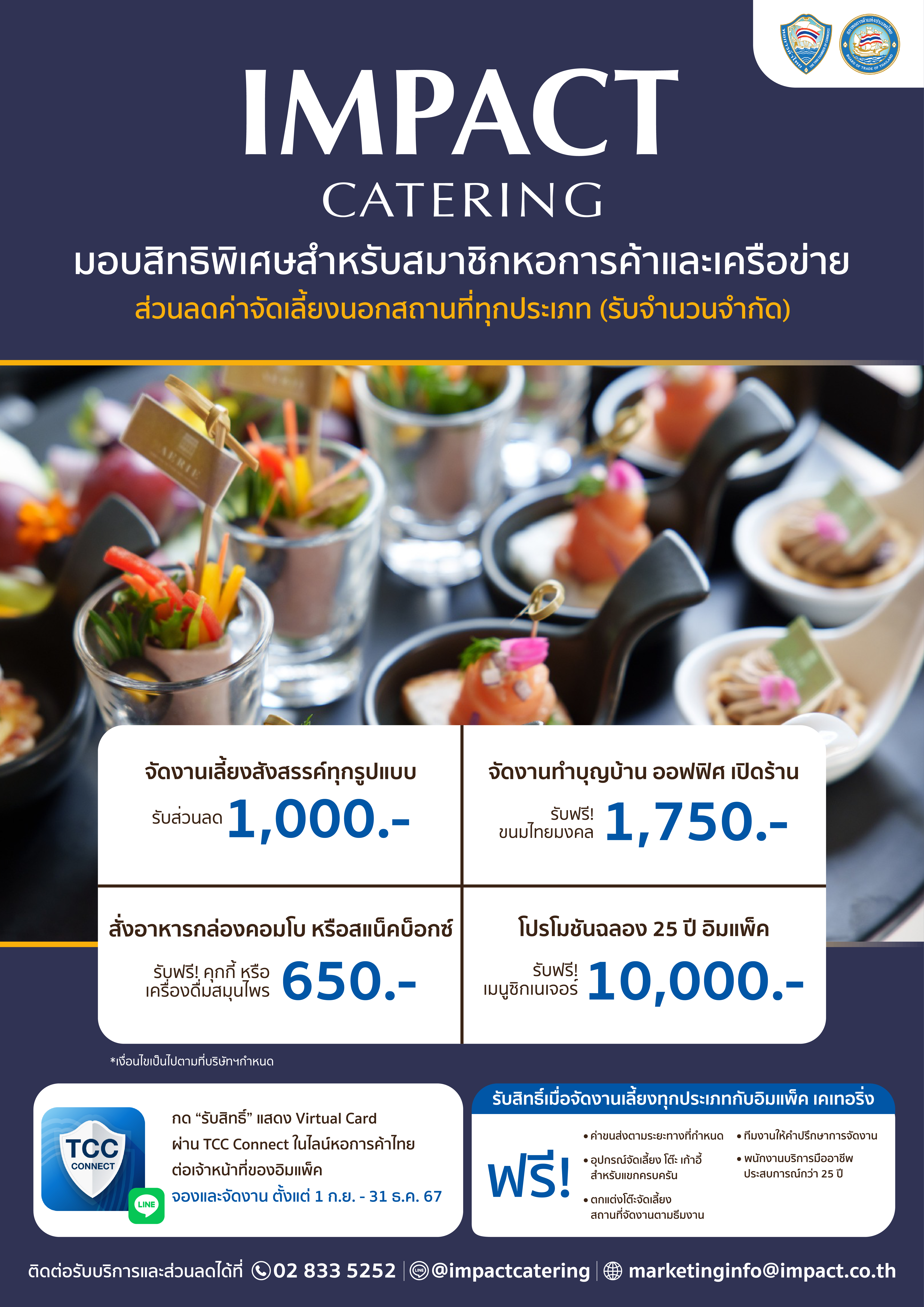 สมาชิกหอการค้าและเครือข่าย สามารถรับสิทธิได้บนช่องทางของ TCC Connect ผ่านไลน์หอการค้าไทย ต่อเจ้าหน้าที่ของอิมแพ็ค