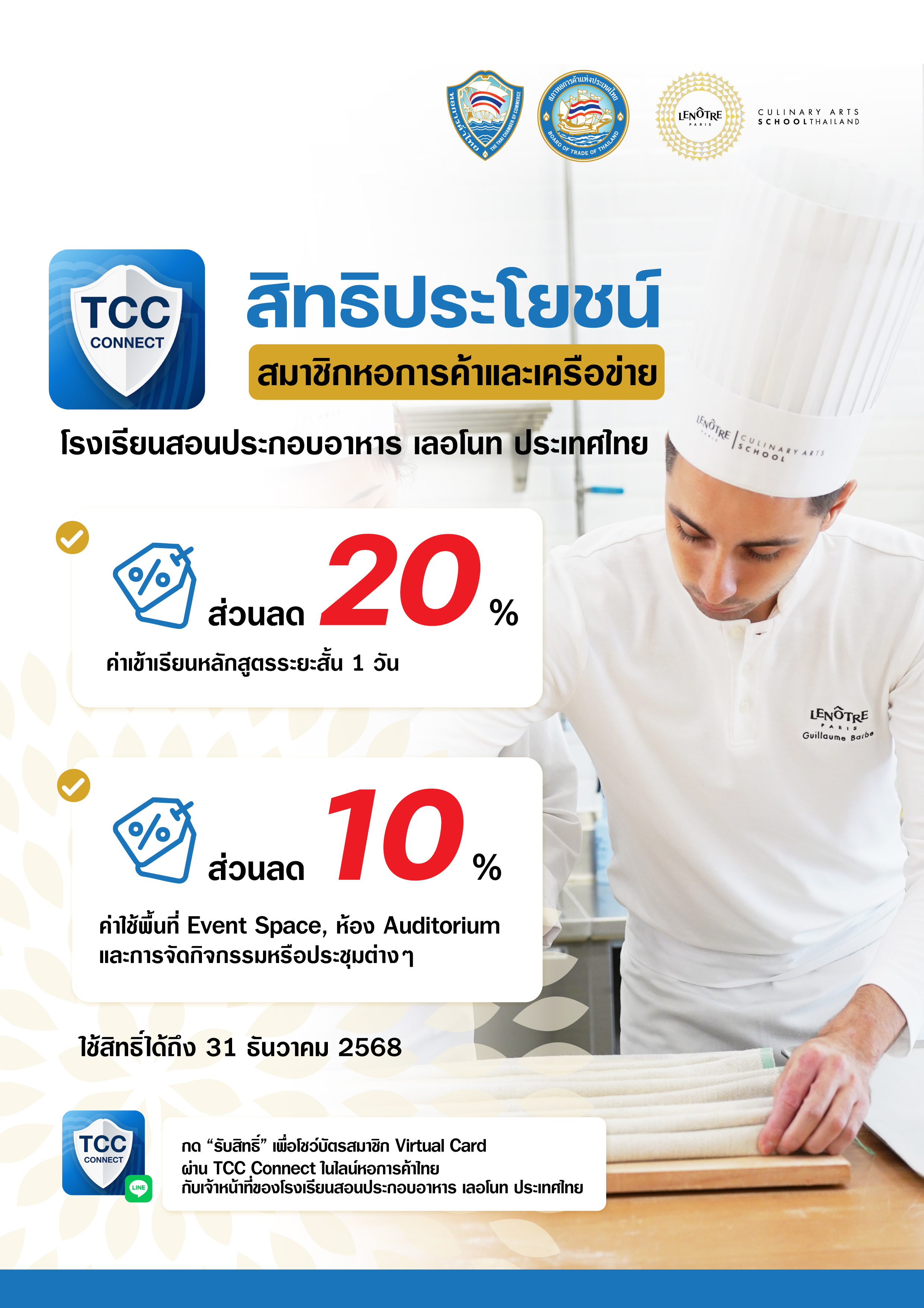 1. สามารถแจ้งการใช้สิทธิ์กับเจ้าหน้าที่ของโรงเรียนสอนประกอบอาหาร เลอโนท ประเทศไทย ตั้งแต่ขั้นตอนแรกที่จอง
