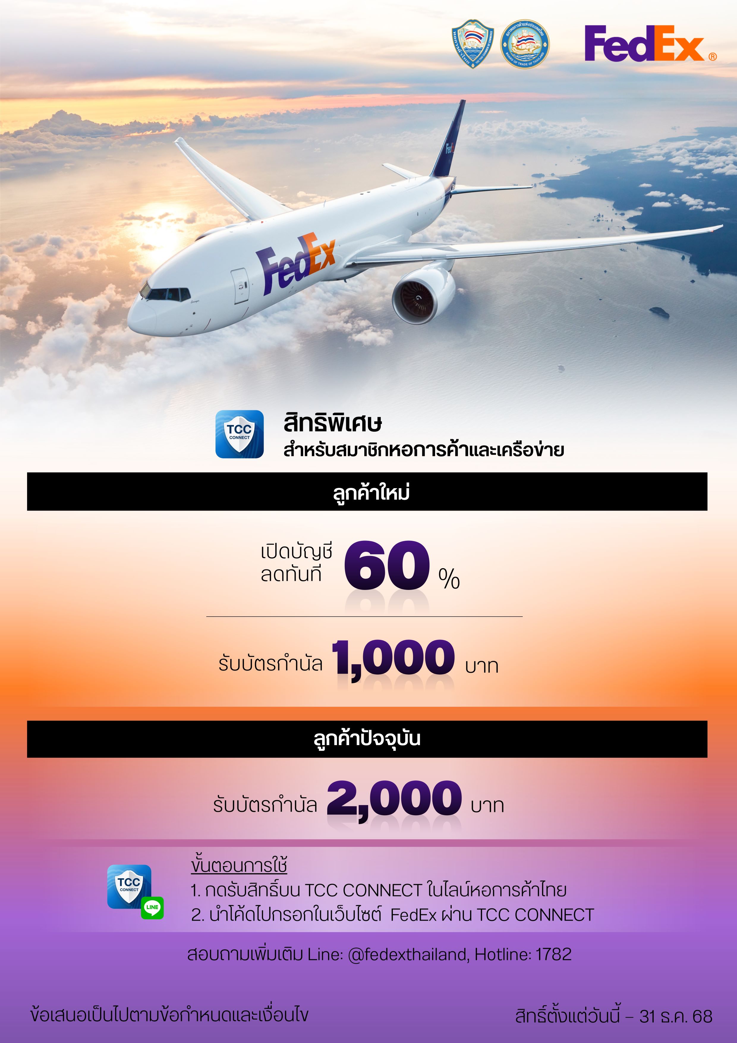 • รับทันทีส่วนลด 60% เมื่อเปิดบัญชีใหม่จัดส่งใหม่กับ FedEx