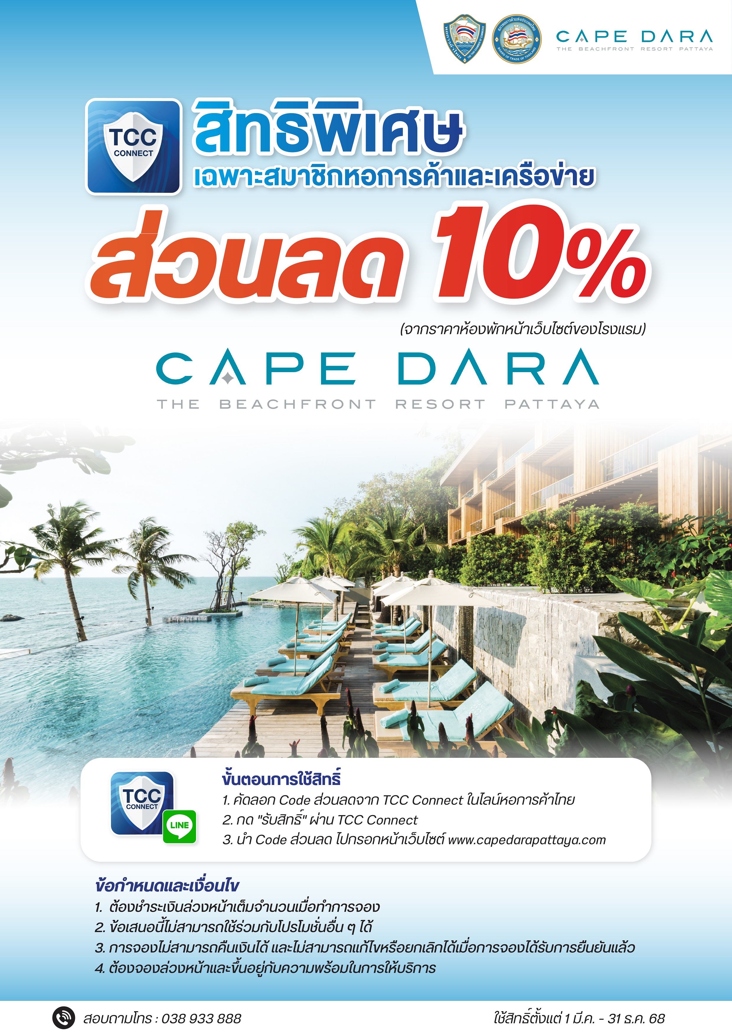 3. นำ Code ส่วนลดไปกรอกหน้าเว็บไซต์ www.capedarapattaya.com