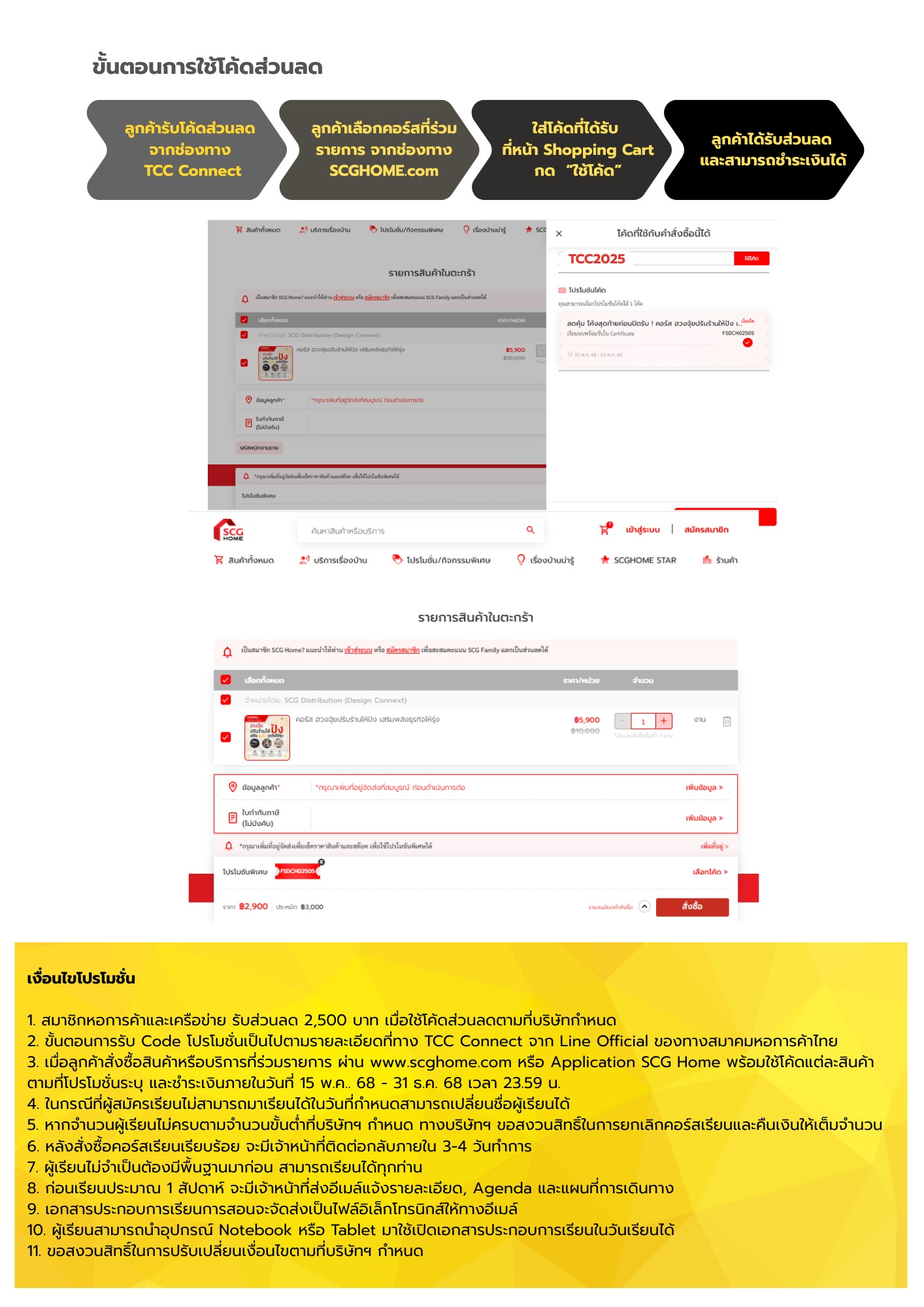 เข้าไปดูคอร์สเรียนได้ที่ เว็บไซต์ SCG Home > หน้าหลัก > สินค้าทั้งหมด > หลักสูตรฝึกอบรม