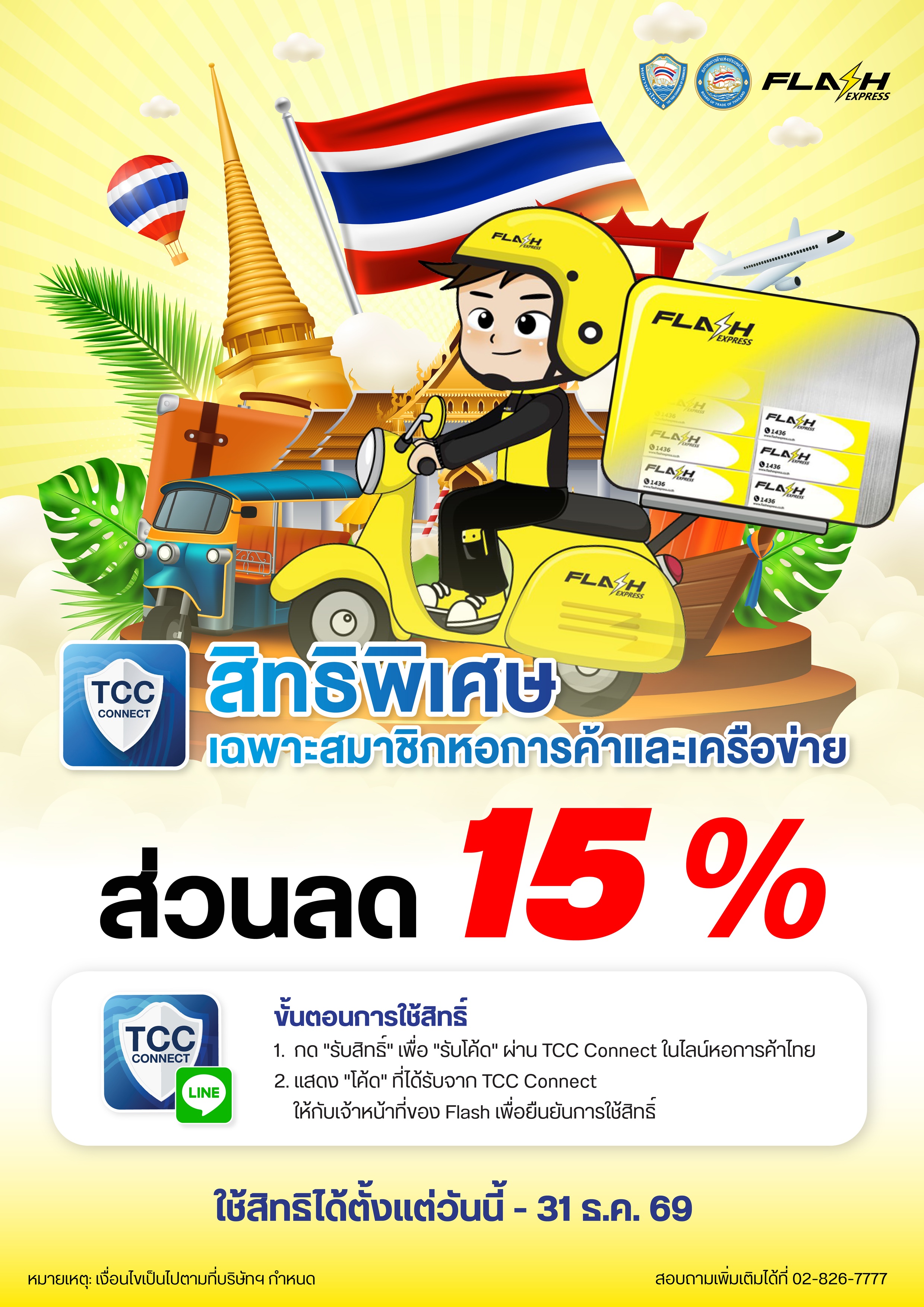 2. แสดงโค้ด ที่ระบุใน TCC Connect ให้เจ้าหน้าที่ของ Flash Shop พร้อมทั้งแจ้งว่าเป็น สมาชิกหอการค้าต้องการรับสิทธิ์ ** สามารถใช้สิทธิ์ได้ที่ Flash Shop เท่านั้น