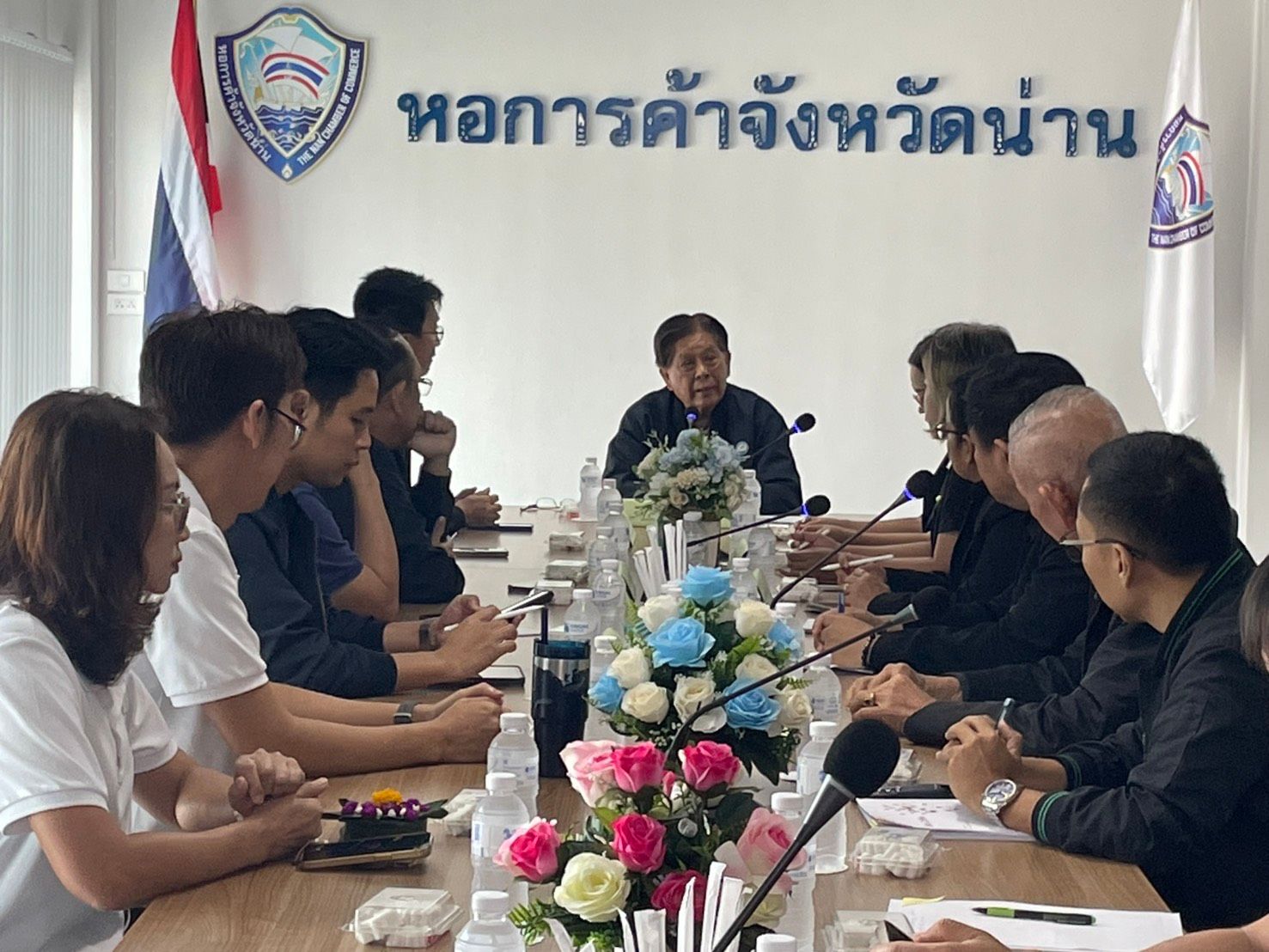 วันที่ 4-5 พฤศจิกายน 2568 คณะผู้บริหารหอการค้าไทย นำโดย คุณชูศักดิ์ ชื่นประโยชน์ รองประธานกรรมการ และประธานคณะกรรมการเพิ่มมูลค่าพืชเกษตร พร้อมด้วย คุณสมบัติ ชินสุขเสริม รองประธานกรรมการ และประธานหอการค้าภาคเหนือ คุณอดิศร์ กฤษณวงศ์ กรรมการบริหาร และประธานคณะกรรมการธุรกิจปศุสัตว์และแปรรูป และคุณวัชรี พรมทอง ประธานหอการค้าจังหวัดน่าน ได้ลงพื้นที่ติดตามและขับเคลื่อนโครงการส่งเสริมการปลูกกาแฟโรบัสต้าครบวงจร ณ จังหวัดน่าน