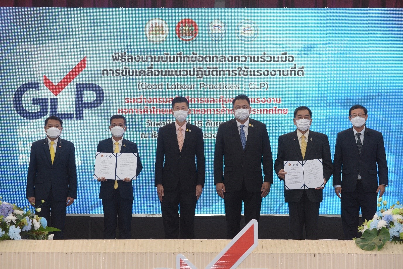 พิธีลงนามบันทึกข้อตกลงความร่วมมือการขับเคลื่อนแนวปฏิบัติการใช้แรงงานที่ดี (Good Labour Practices: GLP) ระหว่างหอการค้าไทยและสภาหอการค้าแห่งประเทศไทย และกรมสวัสดิการและคุ้มครองแรงงาน กระทรวงแรงงาน โดยมีวัตถุประสงค์เพื่อส่งเสริม สนับสนุน ให้สถานประกอบกิจการที่เป็นสมาชิกของหอการค้าไทยและสภาหอการค้าแห่งประเทศไทย ตระหนักถึงความสำคัญของความรับผิดชอบทางสังคมด้านแรงงาน และนำแนวปฏิบัติการใช้แรงงานที่ดี (Good Labour Practices: GLP) ไปปฏิบัติ