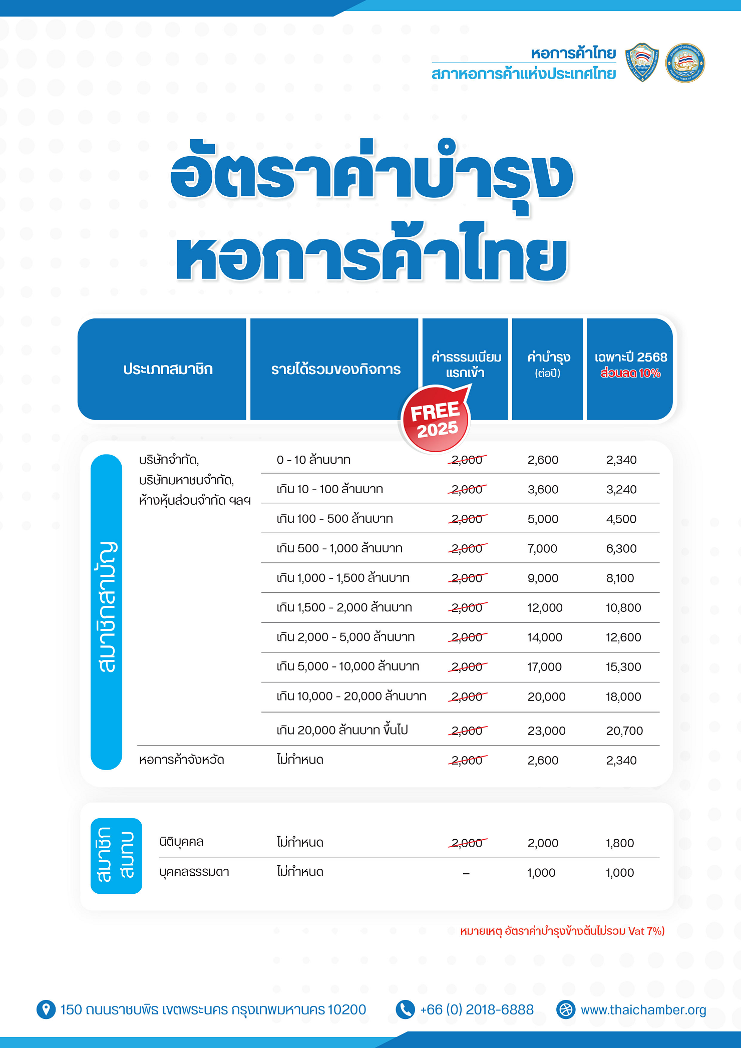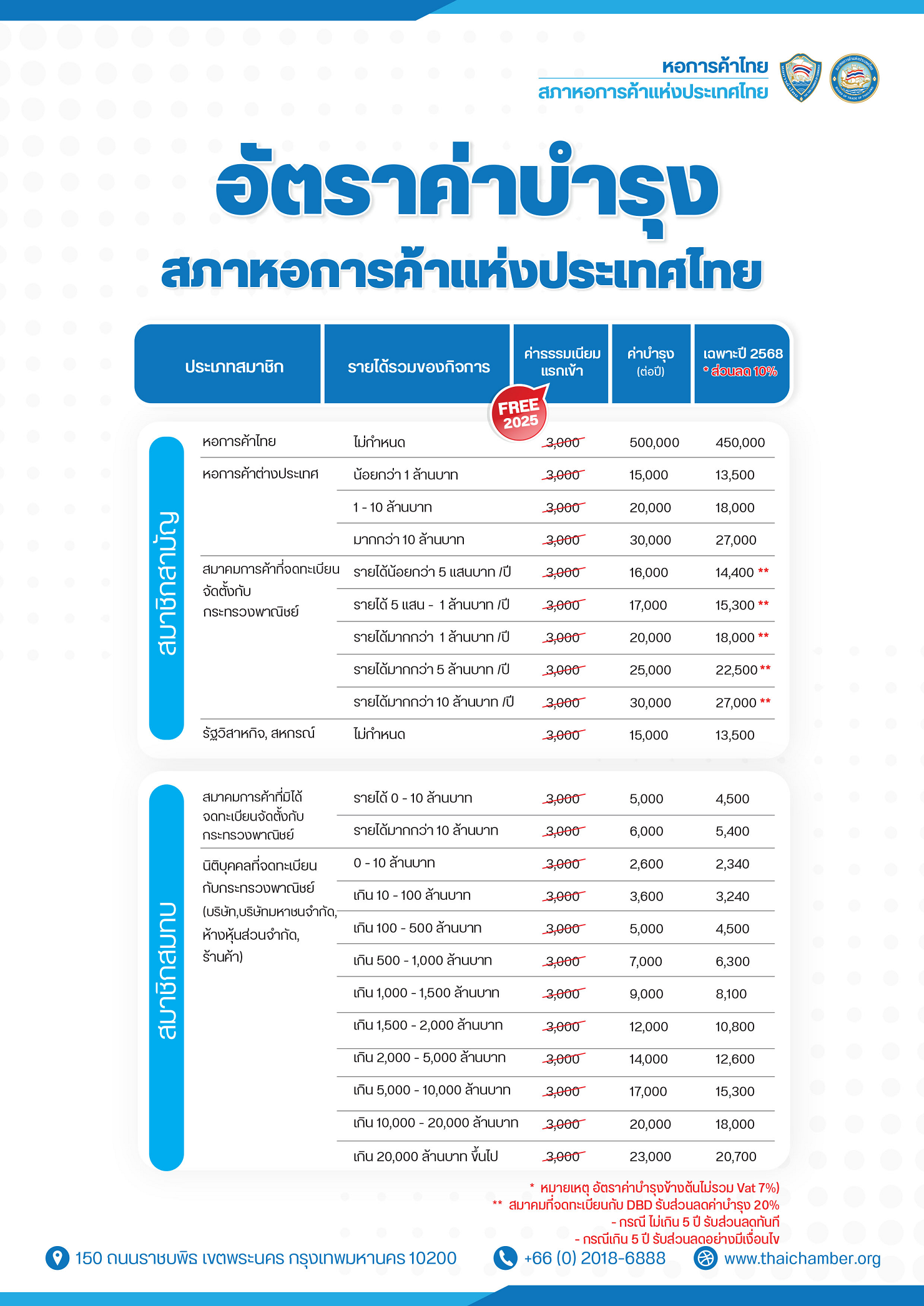อัตราค่าสมัครสมาชิก หอการค้าไทย ปี 2568